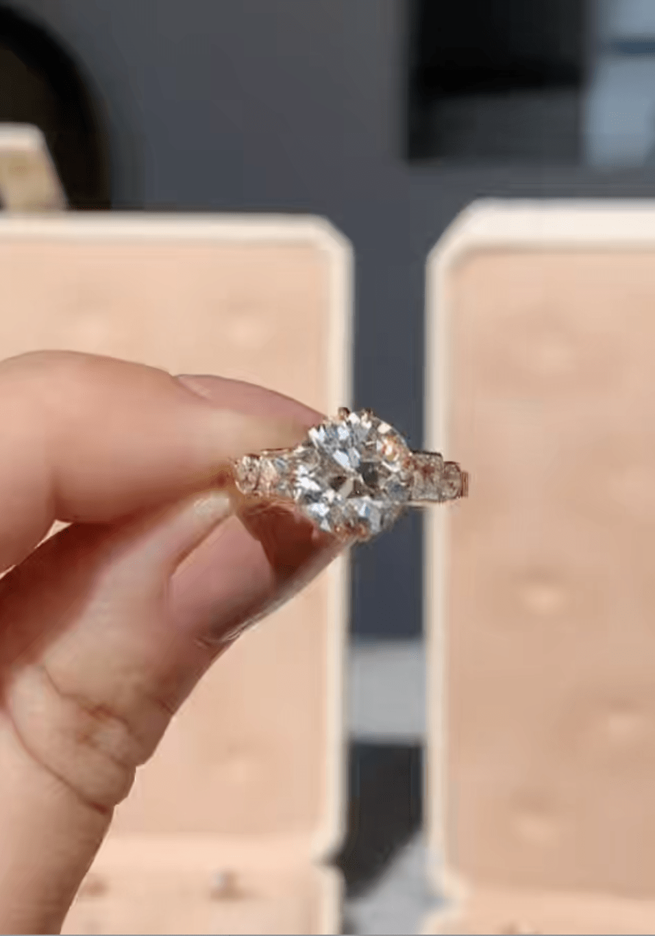 2.85 ct Old European Cut Engagement Ring With Side Stones