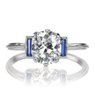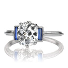 Old Mine Cut Diamond Engagement Ring with Sapphire Baguettes in Platinum Setting