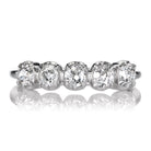 The Andria Band 0.75 is an AB original design made right here in NYC. The ring features five old mine cut diamonds of approximately H-I color, VS-SI clarity. The diamonds combine for 0.75 carats and are collet-set in a platinum. The ring is currently size 6.25 and can be resized!