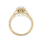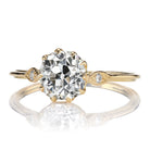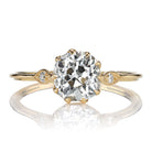 The Alva 1.84 ring is an AB original design made right here in NYC. The ring centers a GIA-certified 1.84-carat old mine cut diamond of J color, SI1 clarity. The stone is set in our signature 10-prong 18kt yellow gold setting with leaf-like shoulders set with an old European cut diamond in the center. The ring is currently size 7 and can be resized!
