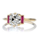Old Mine Cut Diamond Ring with Ruby Baguette Side Stones