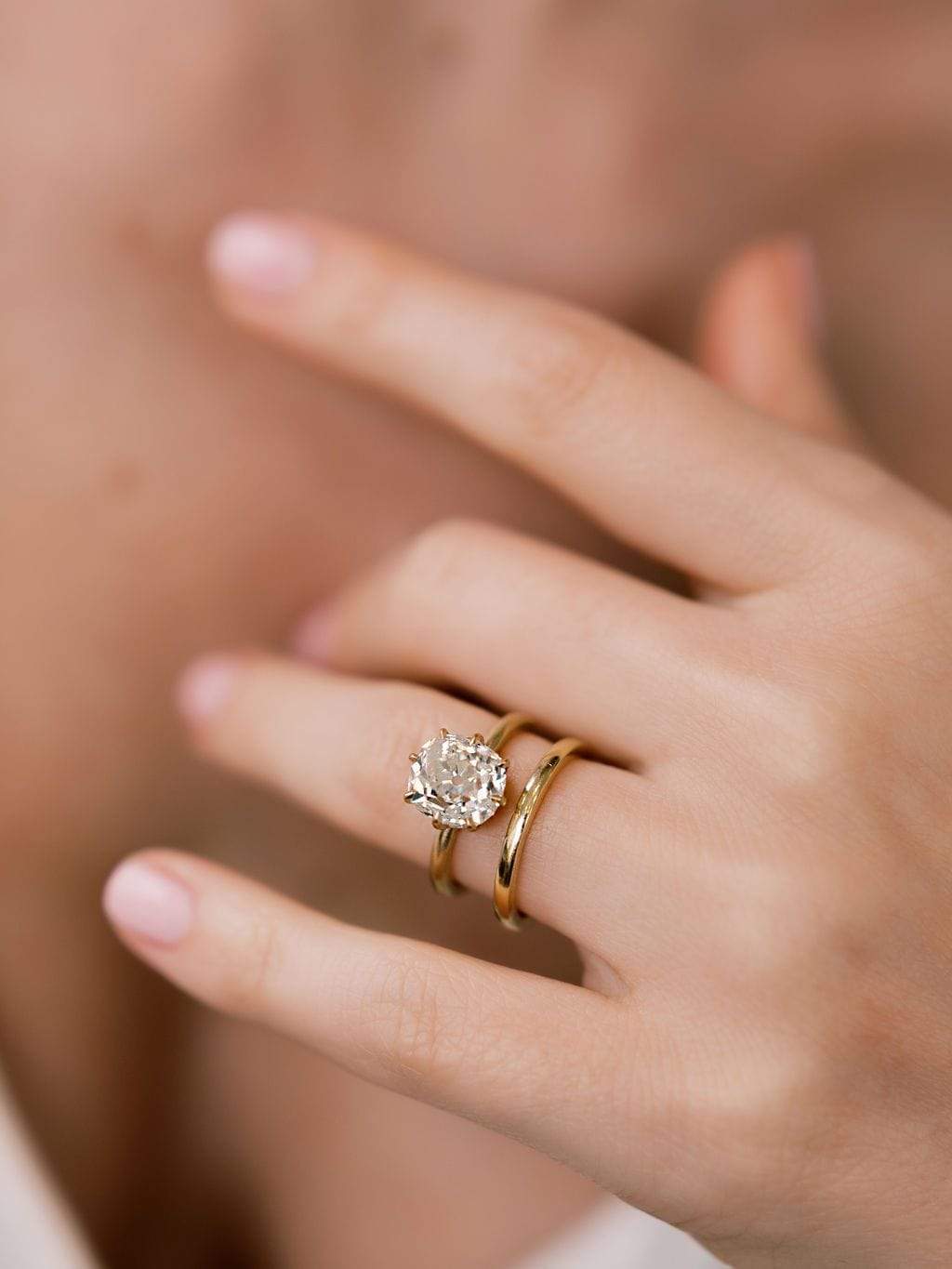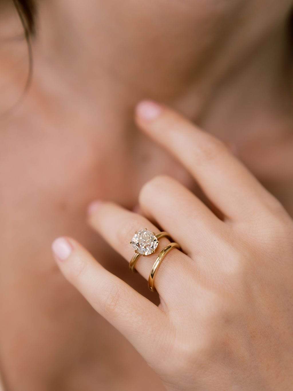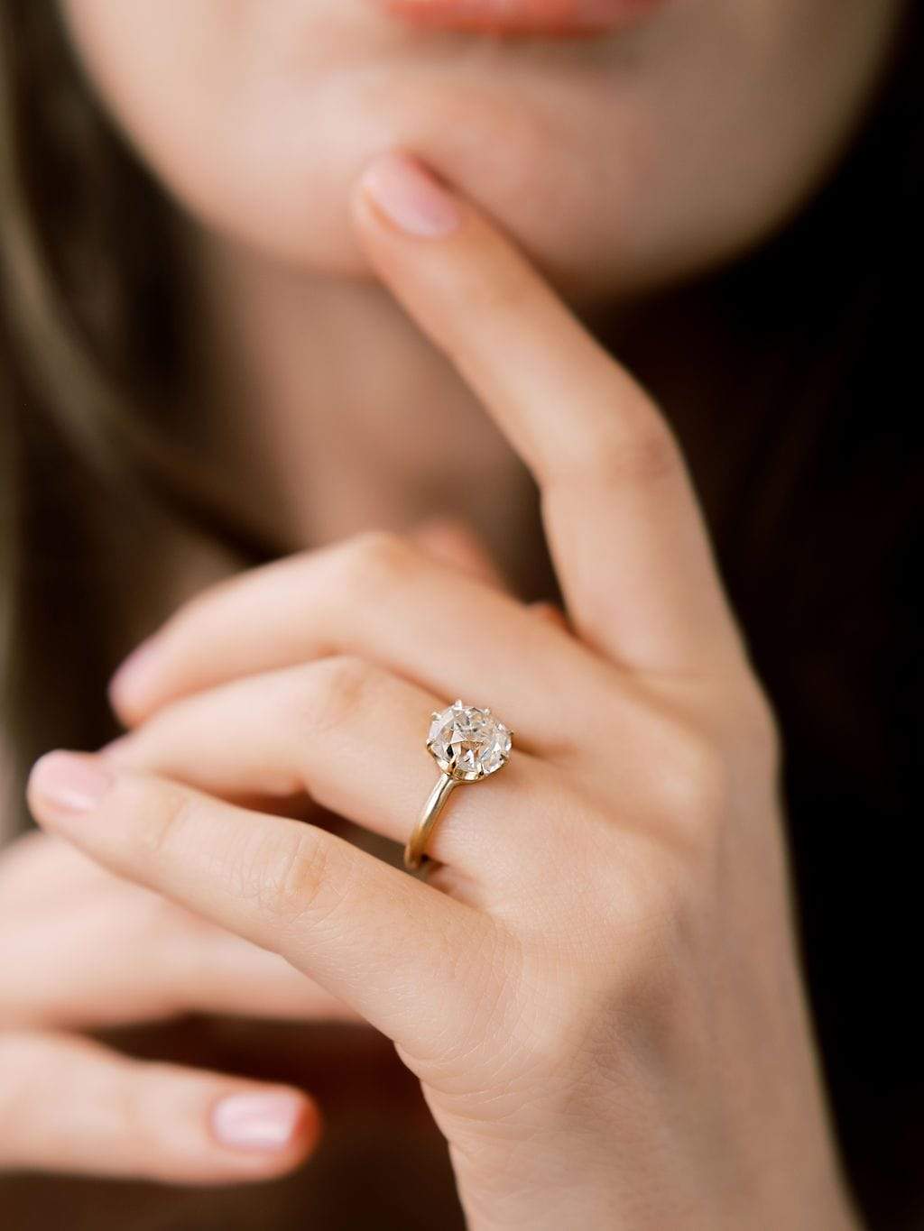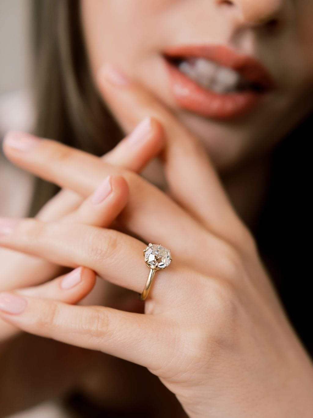 The Jen 3.64 is an original VB design made right here in NYC using a gorgeous authentically antique diamond. The ring centers a GIA Certified 3.64 carat old mine cut diamond of N color, SI1 clarity. The diamond is set in an 8 prong 18kt yellow gold setting with a straight band in a gorgeous antique finish.* The ring is size 6 and can be resized!