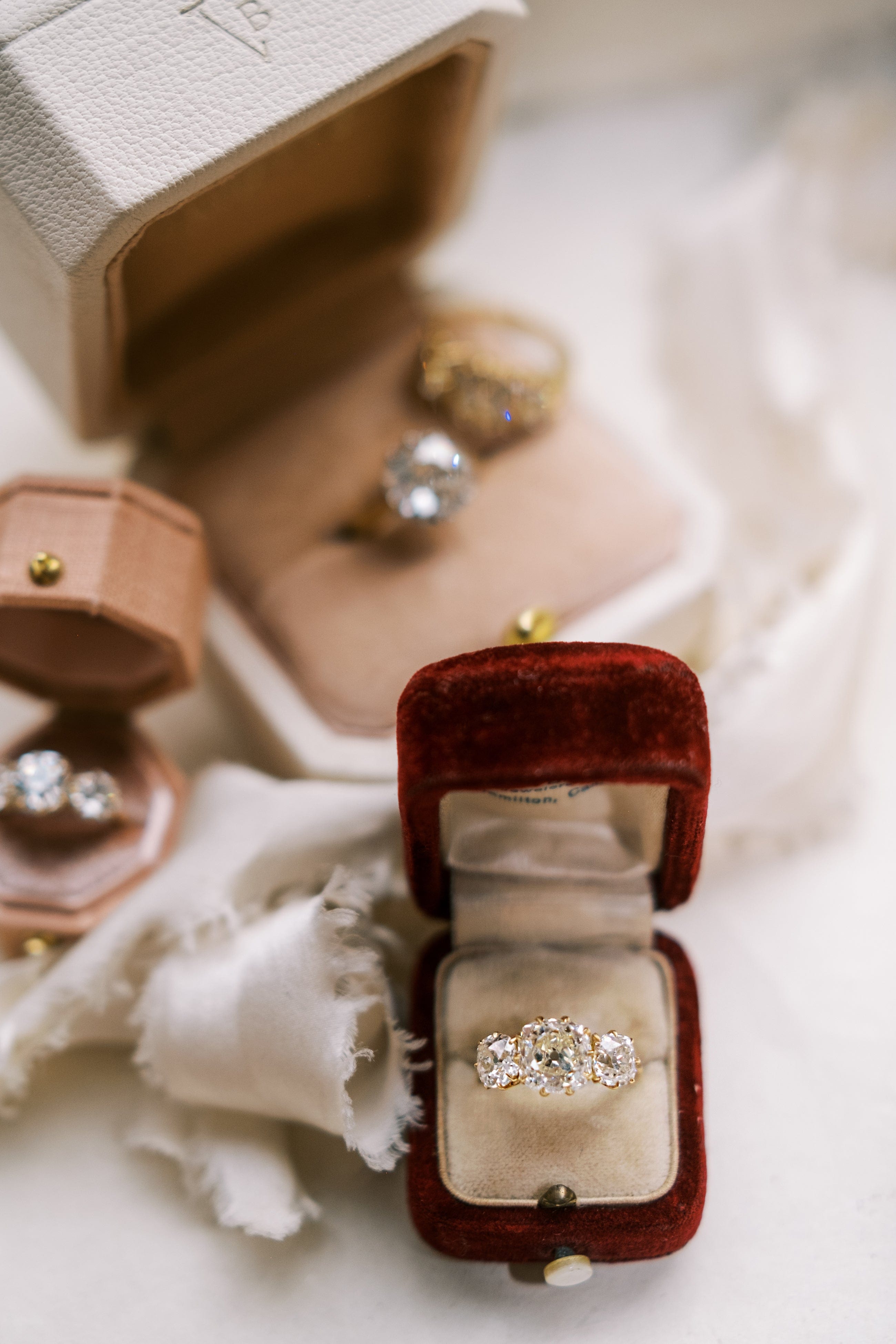 This ring features three gorgeous and glittering old mine cut diamonds all that have that charming antique chunkiness we adore. We love the finger coverage that these large stones provide and the sleek mix of big, bold stones with a delicate setting.