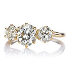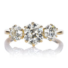 Old Mine Cut Diamond Three Stone Engagement Ring in 18kt Yellow Gold