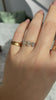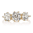The Marielle 1.12 ring is a VB original design made right here in NYC using authentically antique diamonds. The ring centers a GIA certified 1.12-carat old mine cut diamond of I color, SI2 clarity. To each side is an old mine cut diamond, both combining for 1.20 carats. The stones are set in an 18 karat yellow gold setting. The ring is currently size 5.75 and can be resized!