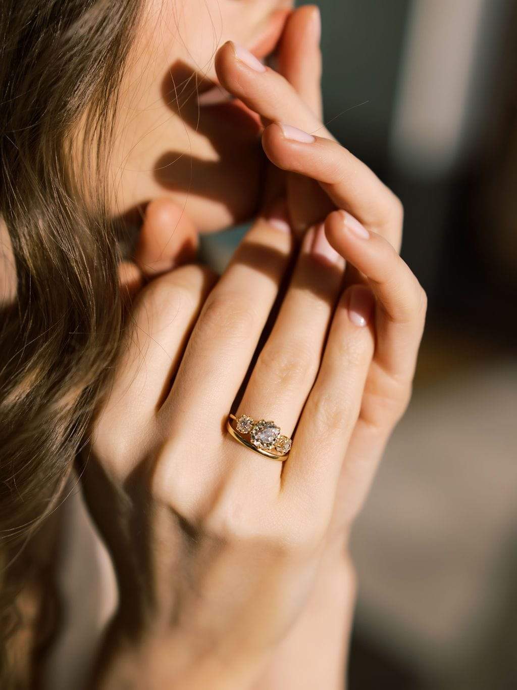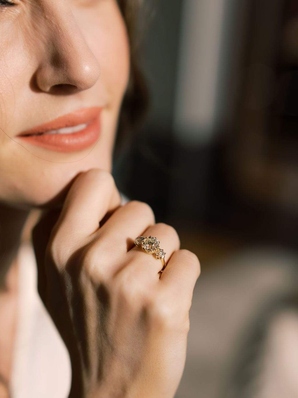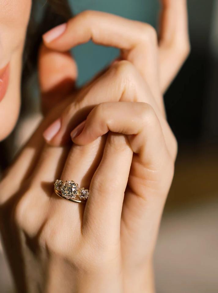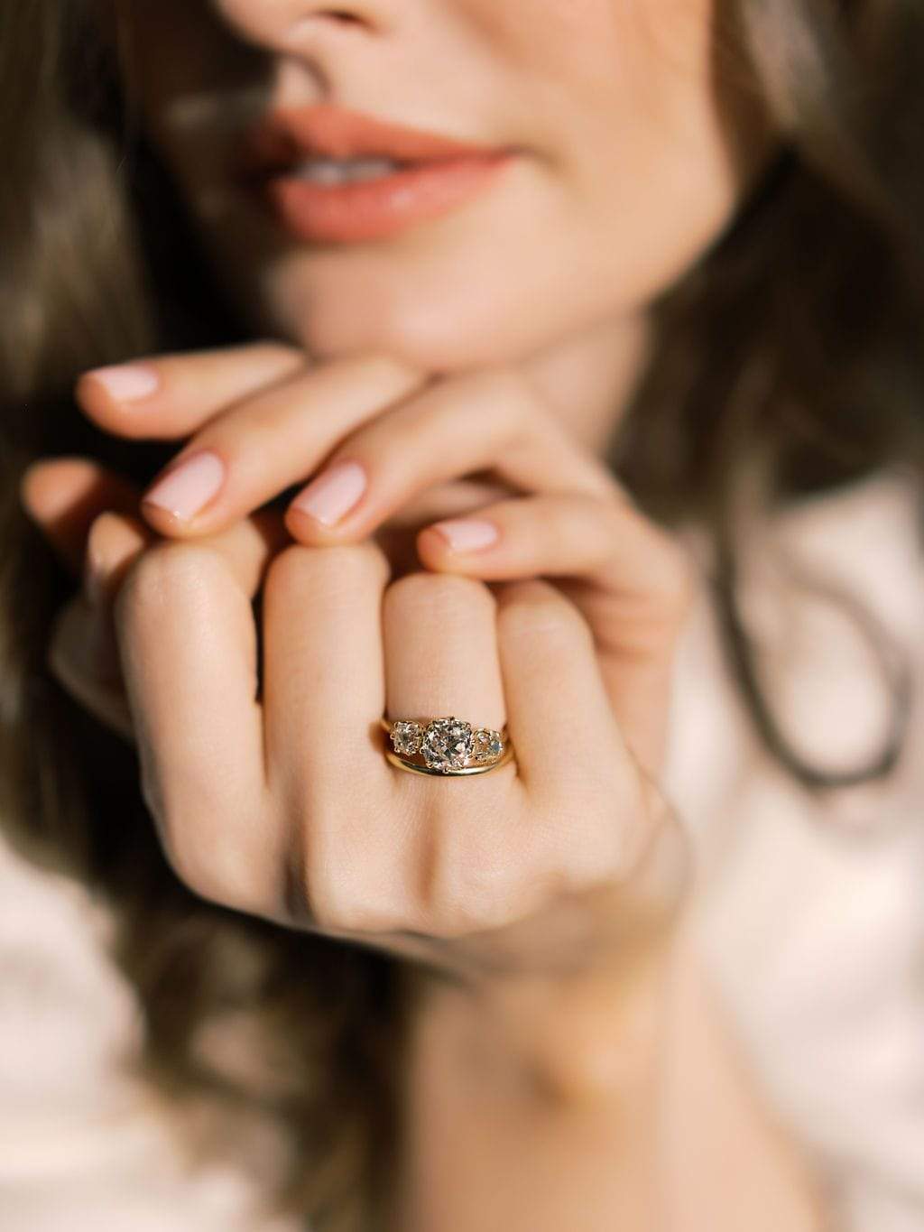 This gorgeous Marielle version features three chunky old mine cuts that are full of life and super sparkly. The ring is low-profile and ultra stackable.