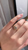 The hue of the center diamond is such a unique color and contrasts with the rose gold metal and the whiter diamonds that surround it! Low profile with so much character, this ring is truly one-of-a-kind!