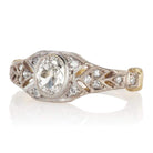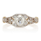 With the combination of platinum and yellow gold, you absolutely get the best of both worlds with this ring! The Nyla has a rare old oval cut diamond in a romantic hue that is surrounded by lovely intricate detail! This ring is full of Edwardian beauty!