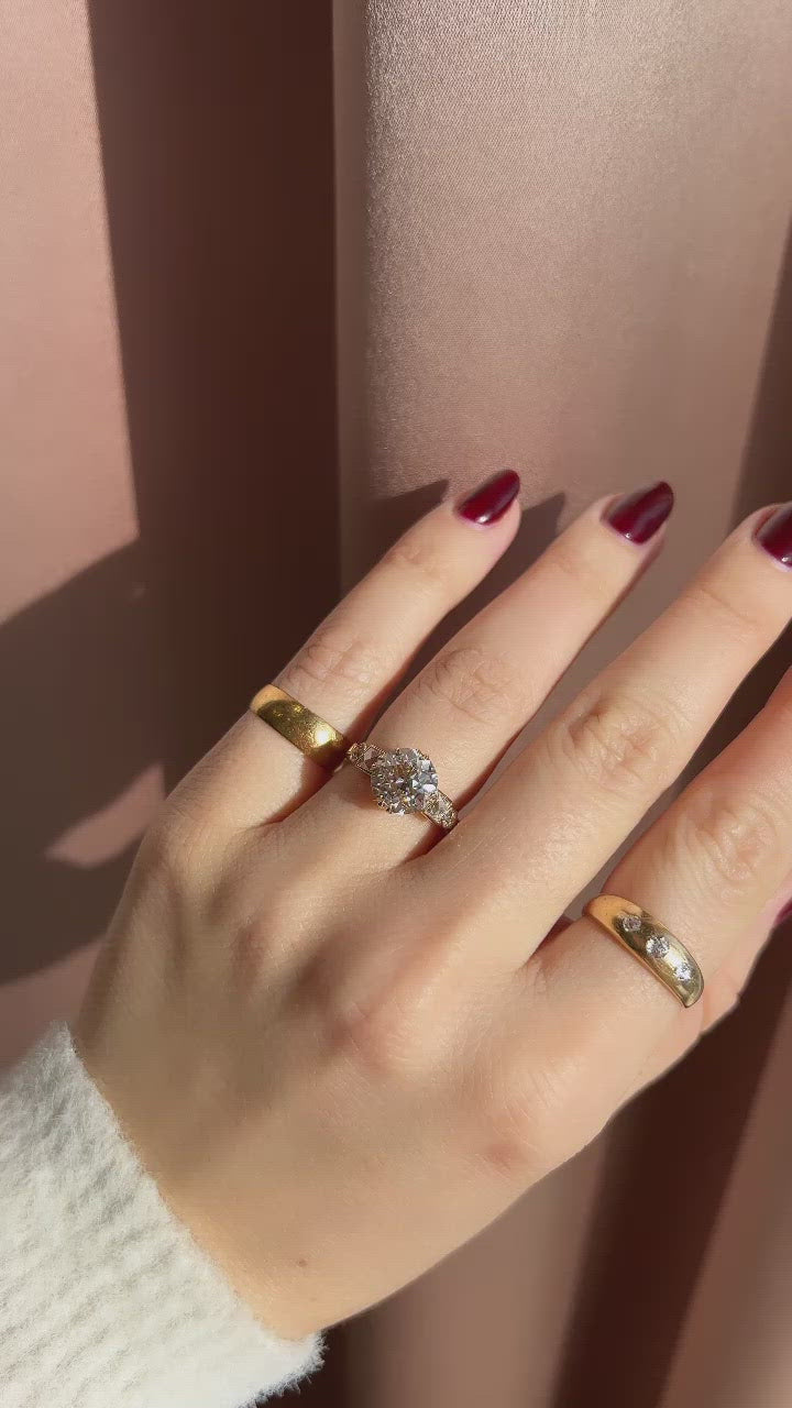 An absolutely stunning diamond in our favorite hue that has just a hint of a peachy color to it. This diamond has beautiful proportions that create an intense sparkle and so much life. We chose Paloma for this beautiful stone because we needed a setting that rivaled the stone's beauty! We love how Petra plays with different shapes and has beautiful details in every nook and cranny.