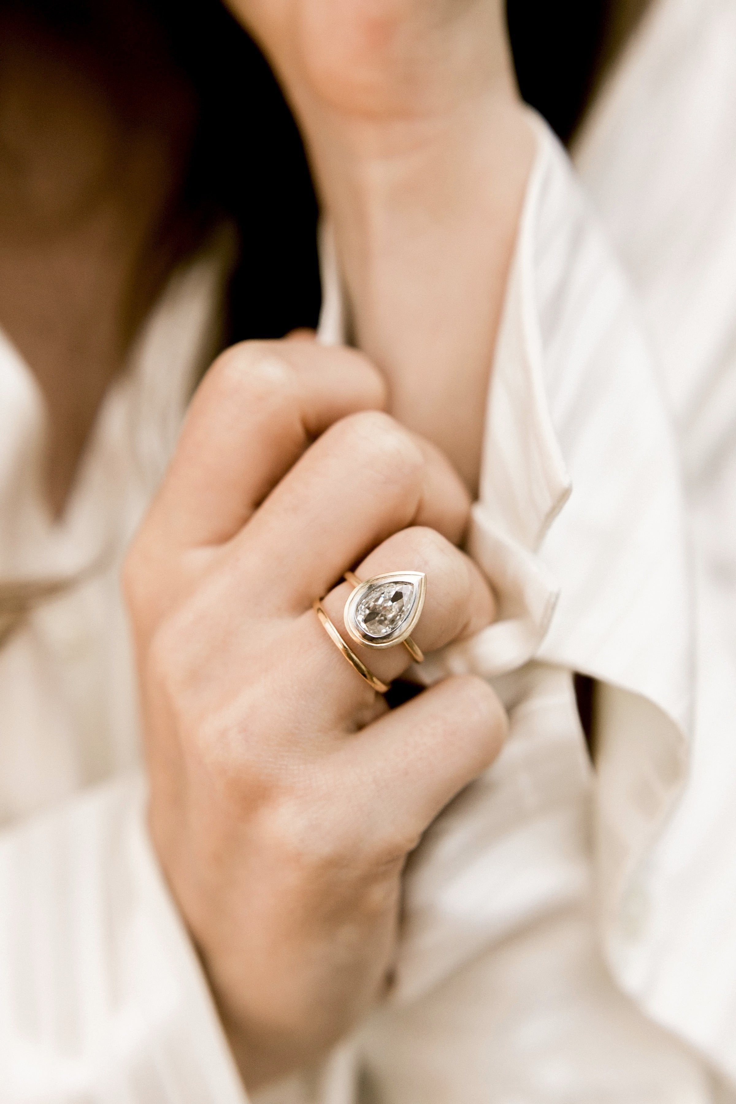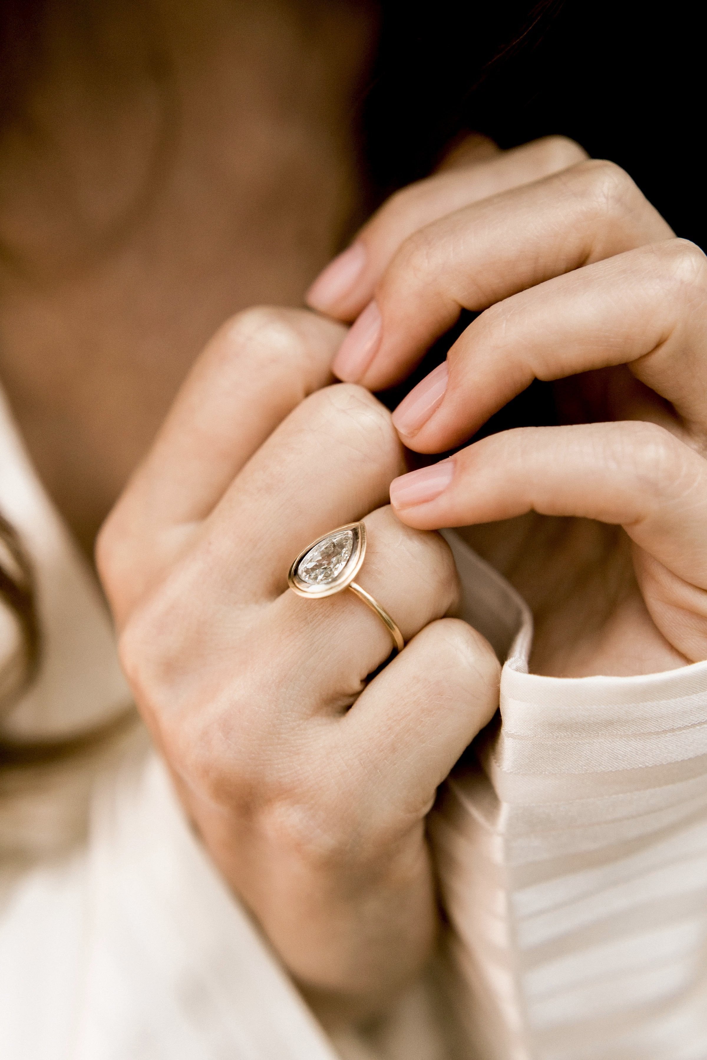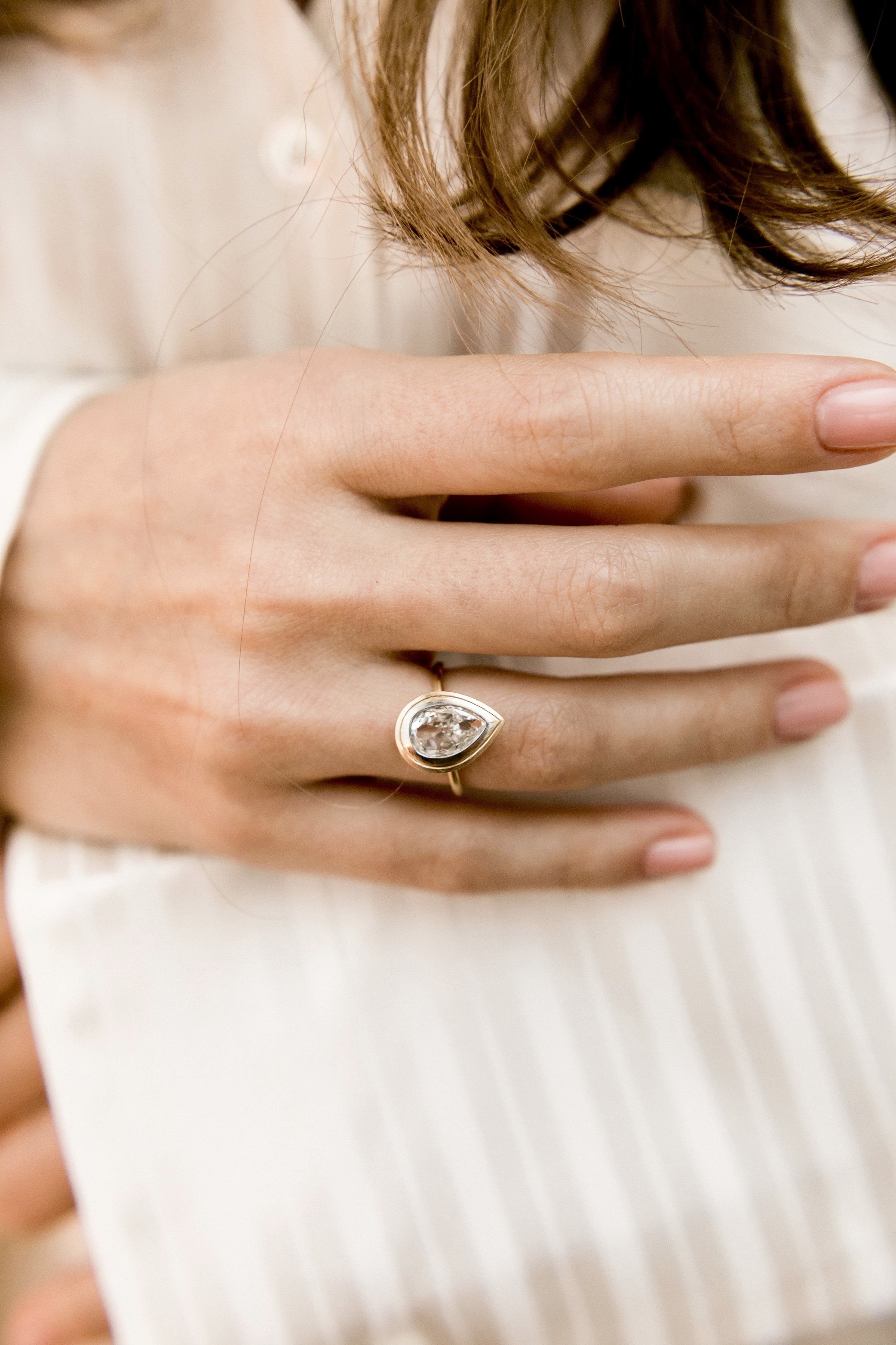 Pear Shaped Bezel Set Engagement Ring