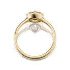 Who can resist a charming pear diamond? With beautiful, lengthening finger coverage this antique slightly chubby pear stone sparkles with bubbly champagne faceting in a golden collet setting. We love her stacked with gold bands like our Chunky Band.