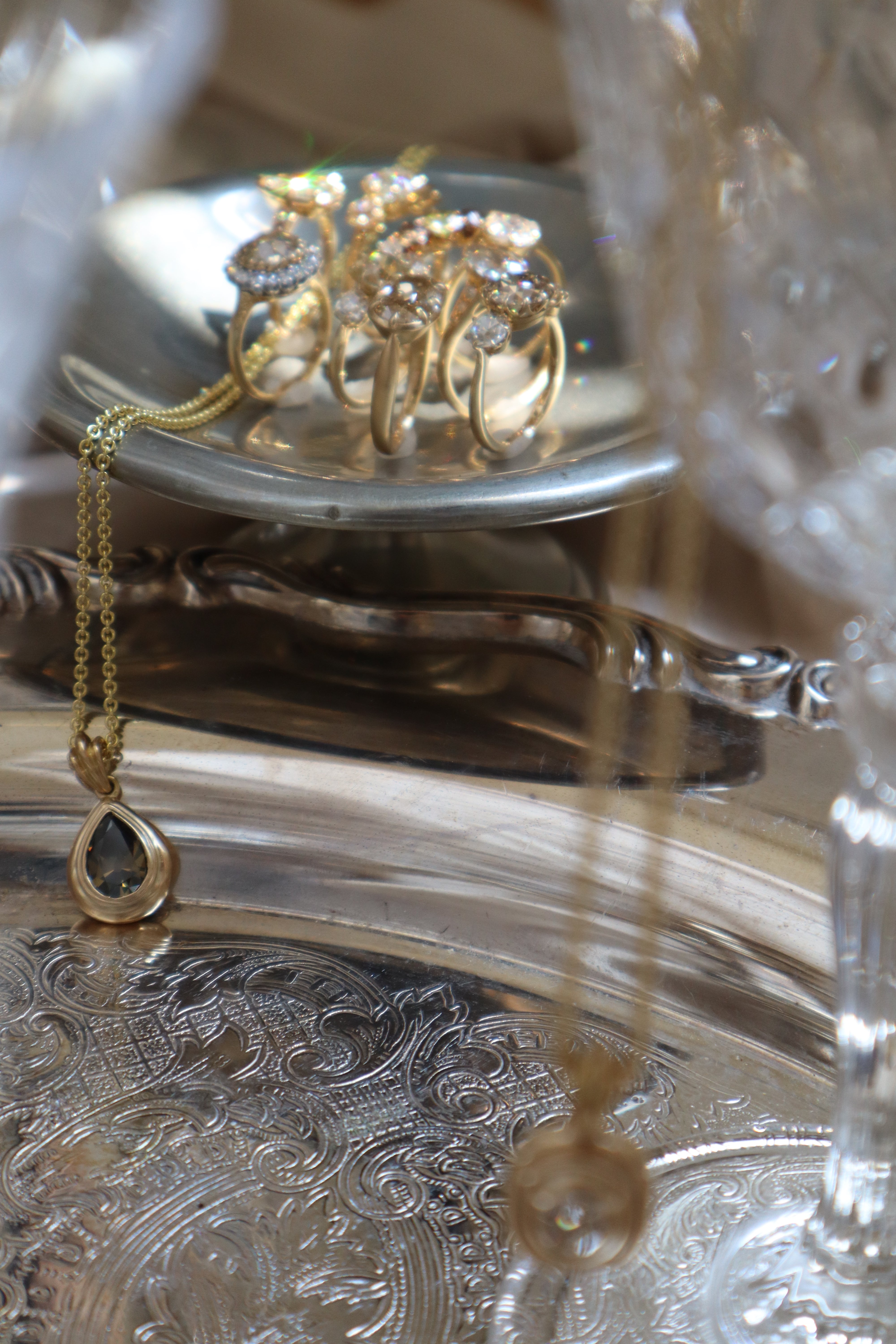 The June Pendant is an everyday staple that we adore. The pendant centers an interesting stone- lightly faceted yet very deeply hued. It shines in its golden setting with sculpted bezels rippling outward from the center stone. The stone's natural color radiates flashes of hazel, gold, and even orangey-brown. Set on our Mermaid bail for a more whimsical look, heavy on the gold.