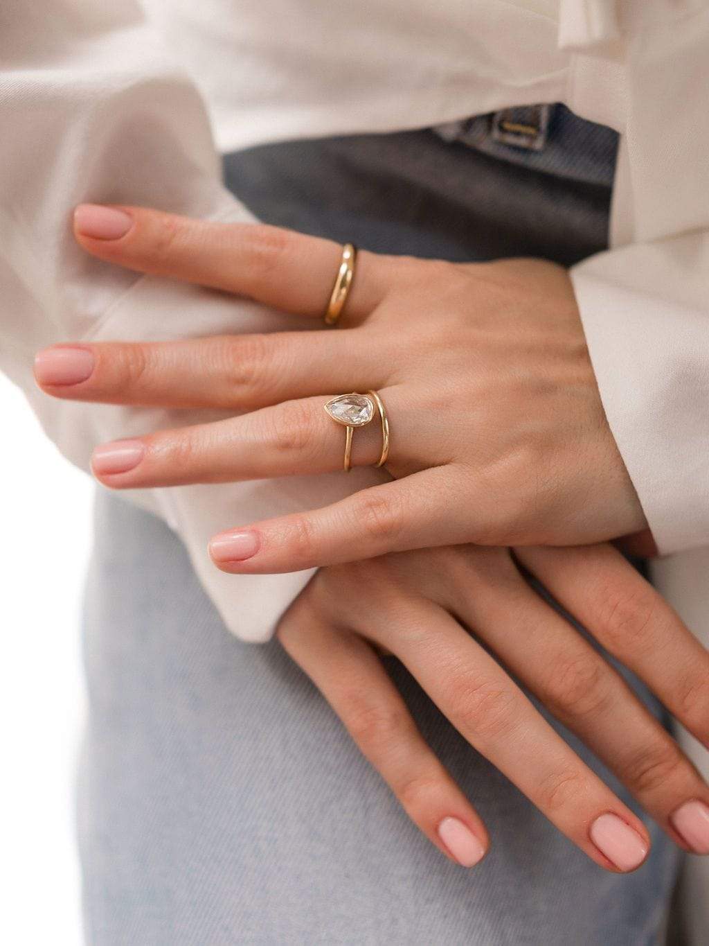 A perennial fave, the Zinfandel ring is clean and simple yet very fashion forward ring! This diamond has a lovely, high dome with a lovely, subtle shimmer!