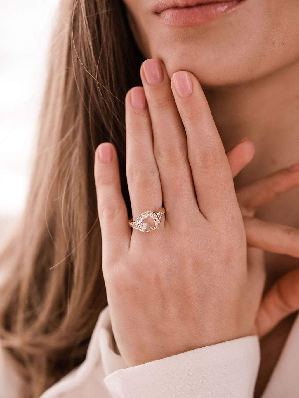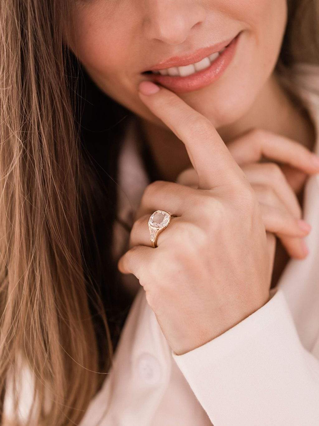 This ring is giving us all the pink champagne vibes we've been needing! The perfect balance of chic and bold. Statement-making but still true to our timeless vintage collection!