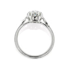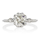 The Alva 1.29 ring is a vintage-inspired ring made by us here in NYC using authentically antique diamonds. The ring centers a GIA certified 1.29-carat old mine cut diamond of J color, SI2 clarity. The stone is set in a platinum setting with leaf-like shoulders set with a small old mine cut diamond. The ring is currently size 4.75 and can be resized!