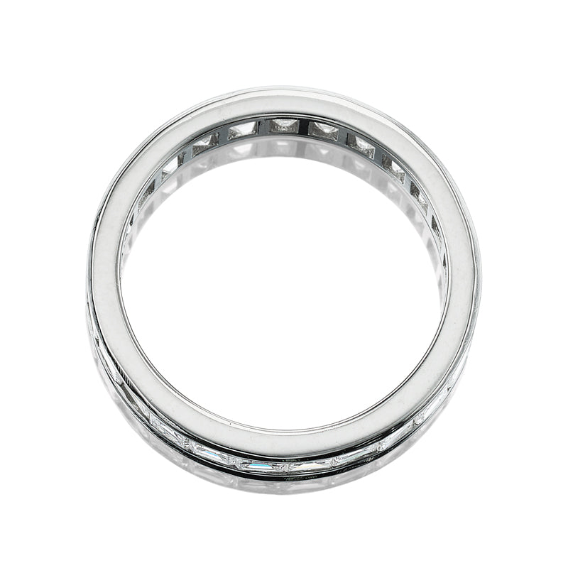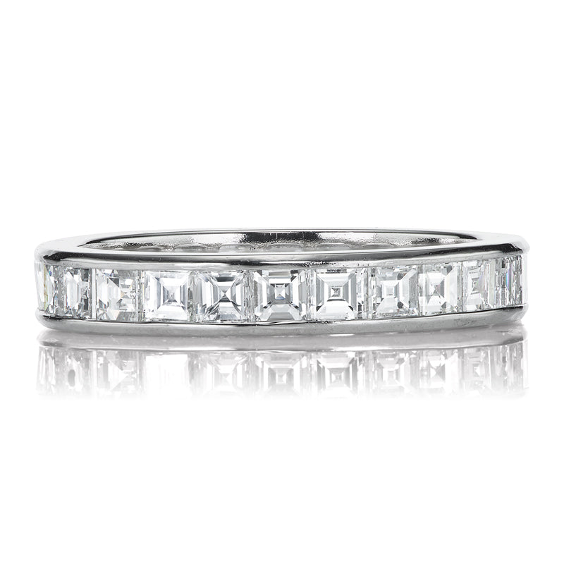 The Sawyer Band is an AB original design. This diamond eternity band has carré cut diamonds of approximately D-F color, VS clarity that wrap all the way around the band. We currently have select sizes in-stock and ready to ship, and we can create made-to-order Sawyer bands in any size.  Please note that these rings cannot be resized.