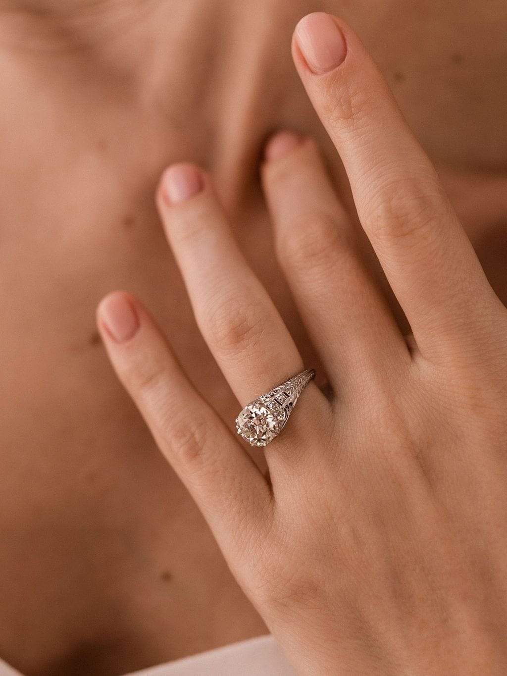 A classic vintage piece with the high attention to detail we love to see in these vintage beauties! The diamond is vibrant and lovely and the Edwardian details create a very elegant look!