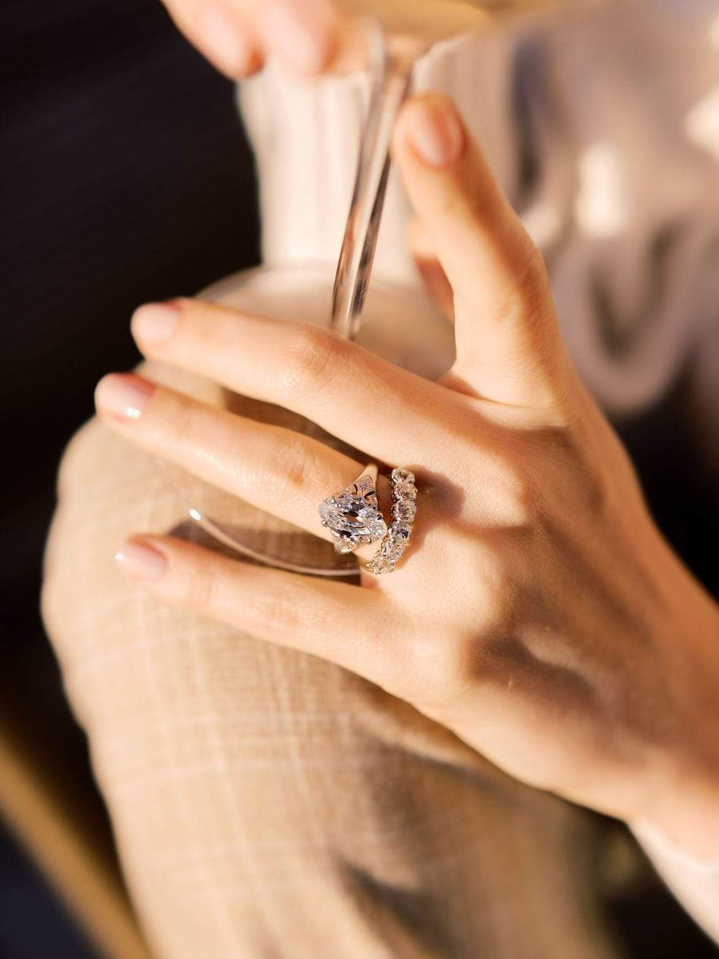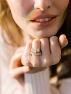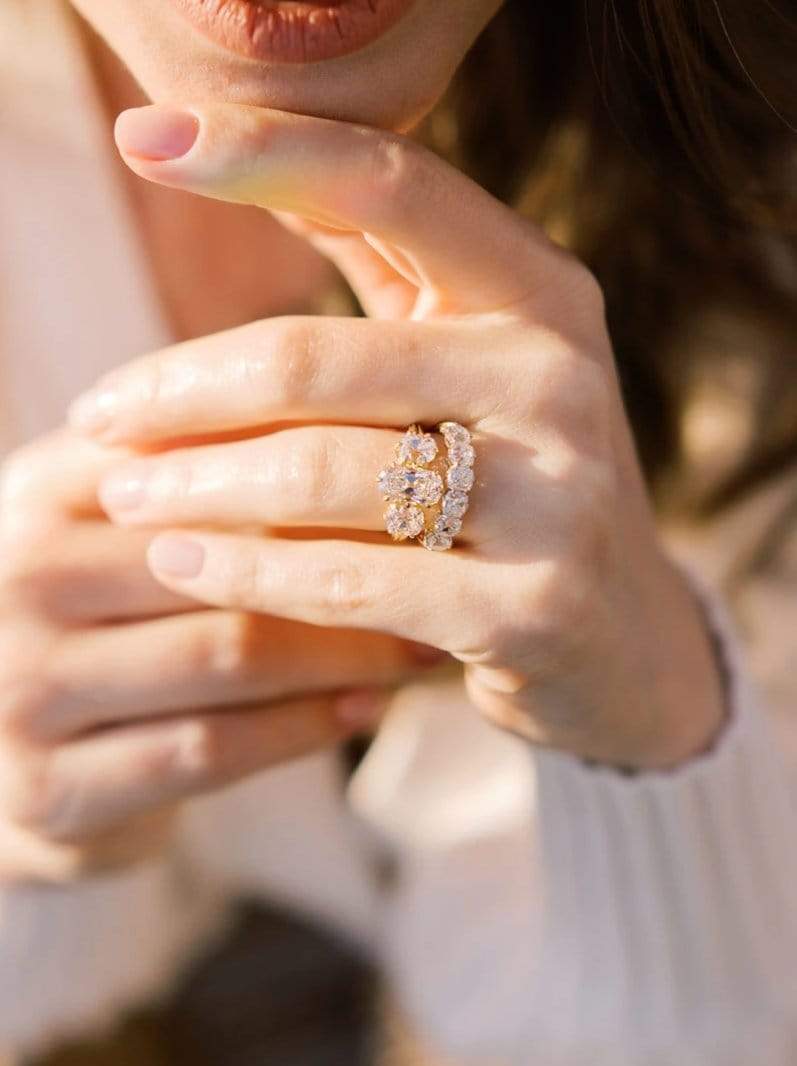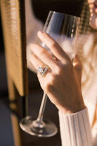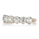The Felicia 2.43 ring is a vintage-inspired VB-made diamond engagement ring. The ring has 6 prong-set old mine cut diamonds of I-J color, VS clarity. The diamonds are set in a platinum-topped 18 karat yellow gold setting. The ring is currently size 5.75 and can be resized.