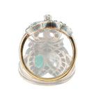 The Kinsey ring is an authentic antique emerald and diamond ring from the Victorian Era circa 1880. The ring features a Pear Cut Emerald and a Pear Cut Diamond, each of approximately 0.70 carats. An additional 16 Rose Cut diamonds and emeralds create a double-heart shaped halo and bow around and above the stones. The stones are set in a 14kt gold and silver setting. The ring is currently size 6 and can be resized!