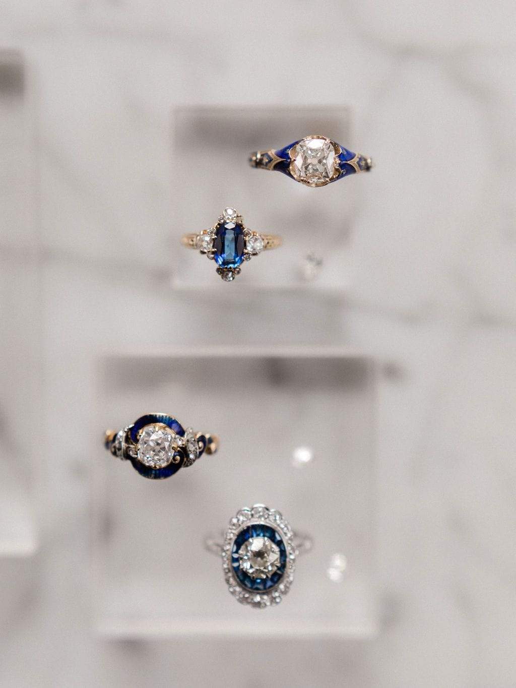 A very unique ring with so many fun vintage touched! The diamonds to the north and south create a fun shape for a very low profile.
