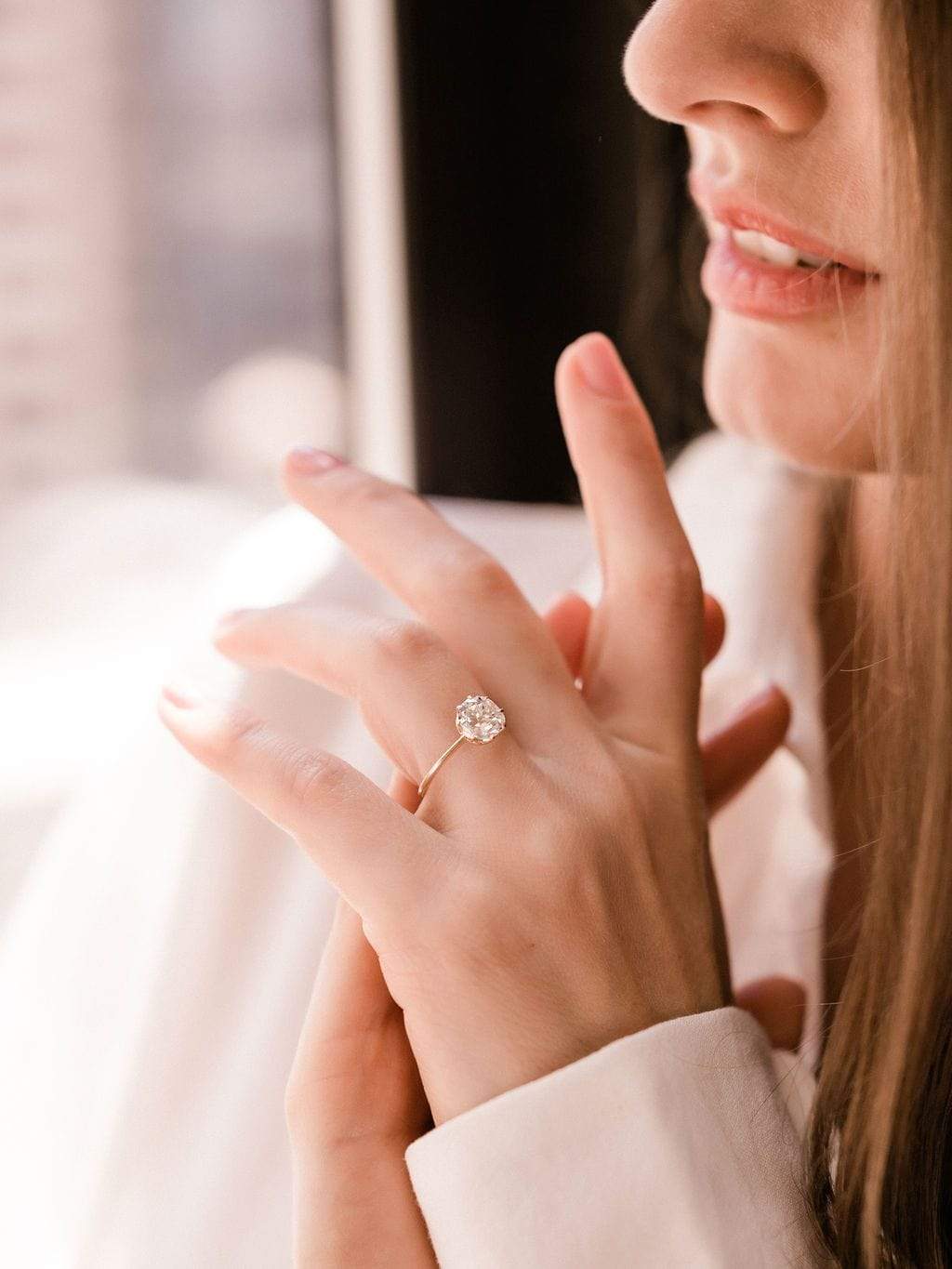 The Bella 1.65 ring is a VB made diamond engagement ring. This 1.65 ct Solitaire Engagement Ring With Thin Band centers a GIA certified 1.65 carat old mine cut diamond of M color, SI1 clarity. The diamond is set in an 8-prong 18 karat yellow gold setting. The ring is currently size 6.25 and can be resized!