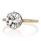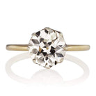 The Wanda ring is a vintage conversion piece that started out life as a necklace and has now become a gorgeous engagement ring. The ring centers a GIA certified 2.27-carat old European cut diamond of N, Very Light Brown color, VS2 clarity. The stone is set in an 8 prong silver basket on an 18 karat yellow gold setting. The ring is currently size 5.75 and can be resized!