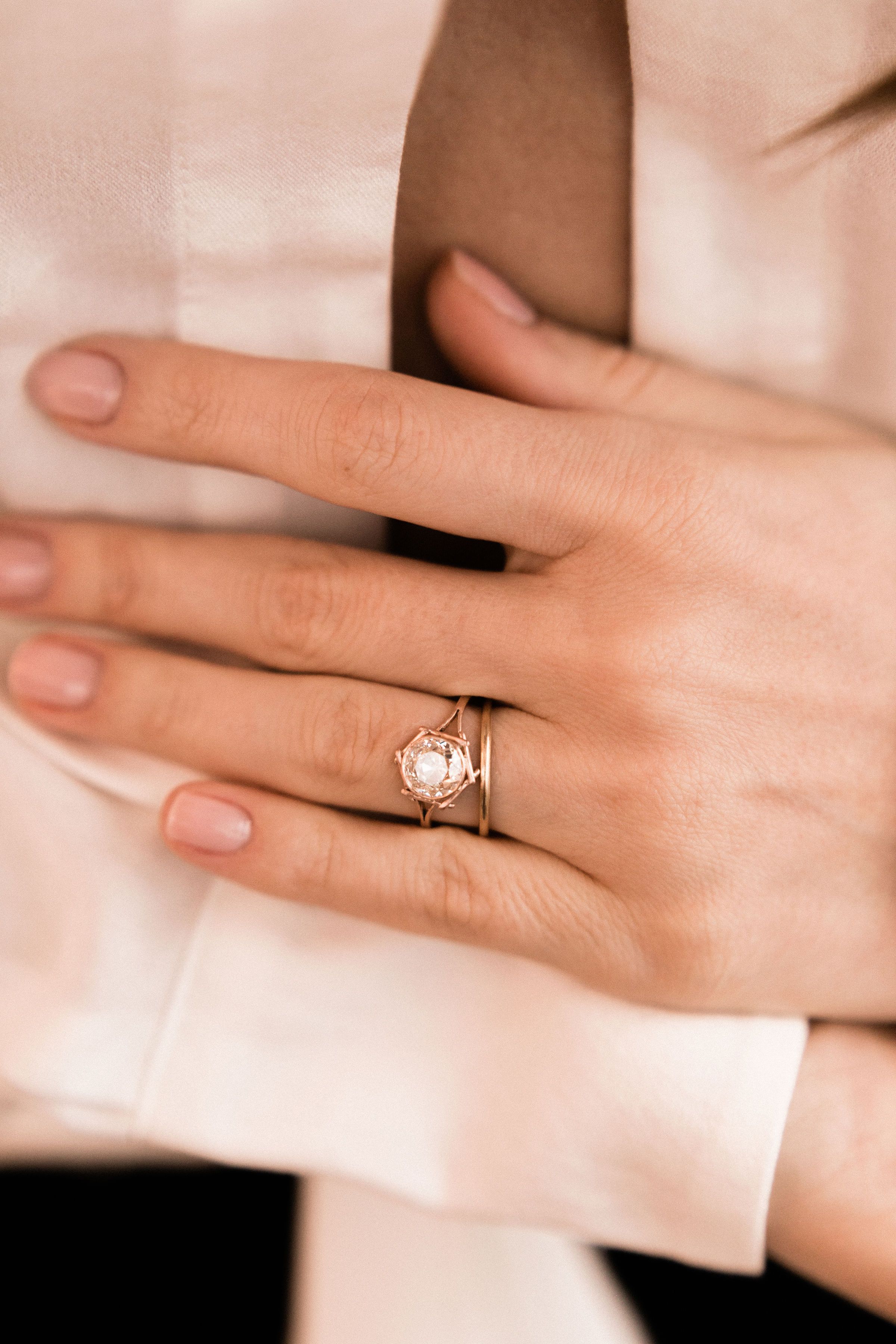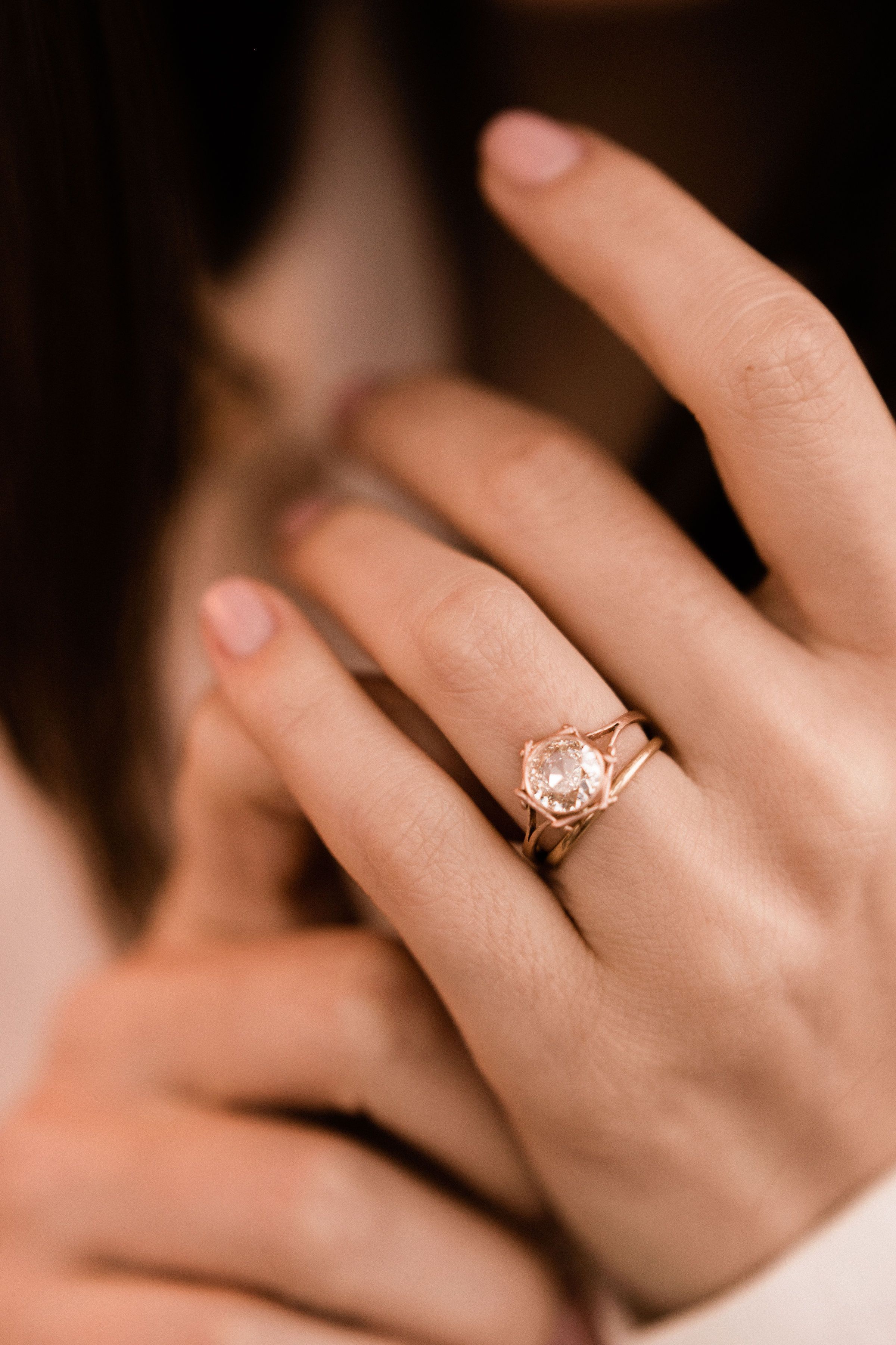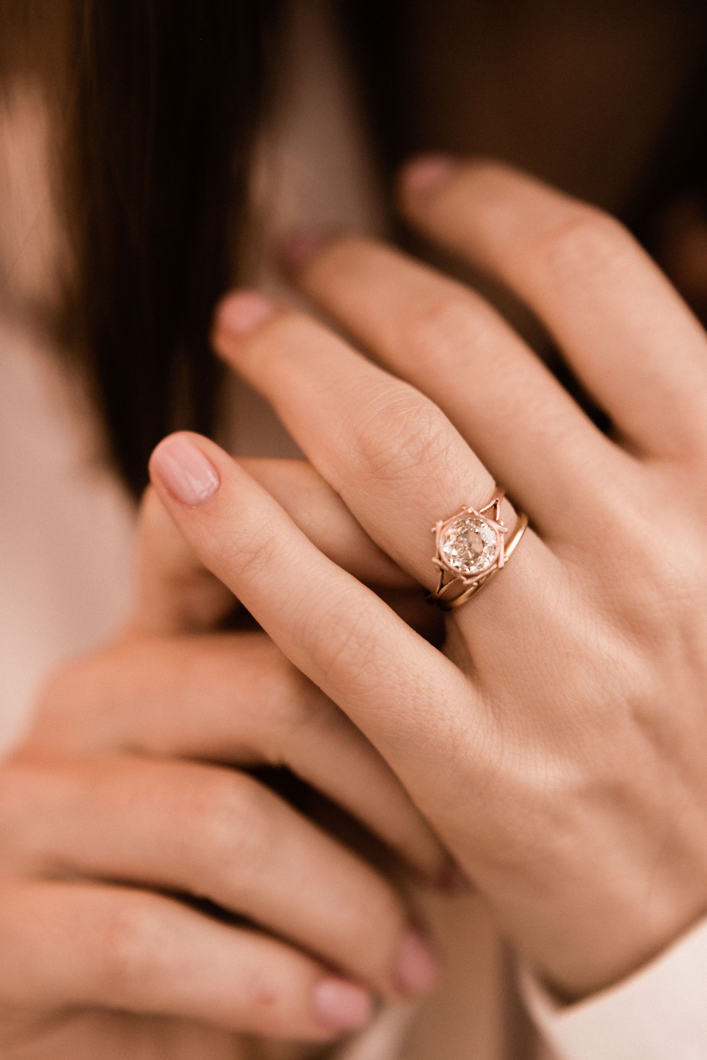 A ring unlike any I've seen! A gorgeous antique diamond with a set über low with sleek details!