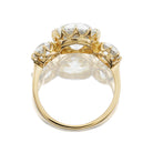 The Marielle 3.68 ring is an AB original design made right here in NYC. The ring centers a GIA-certified 3.68-carat Old Mine Cut diamond of N color, SI1 clarity. On each side of the center stone is an Old Mine Cut diamond, both combining for 1.31-carats of approximately M-N color, VS-SI clarity. The stone is set in a 12 prong 18kt yellow gold setting. The ring is currently size 6 and can be resized!