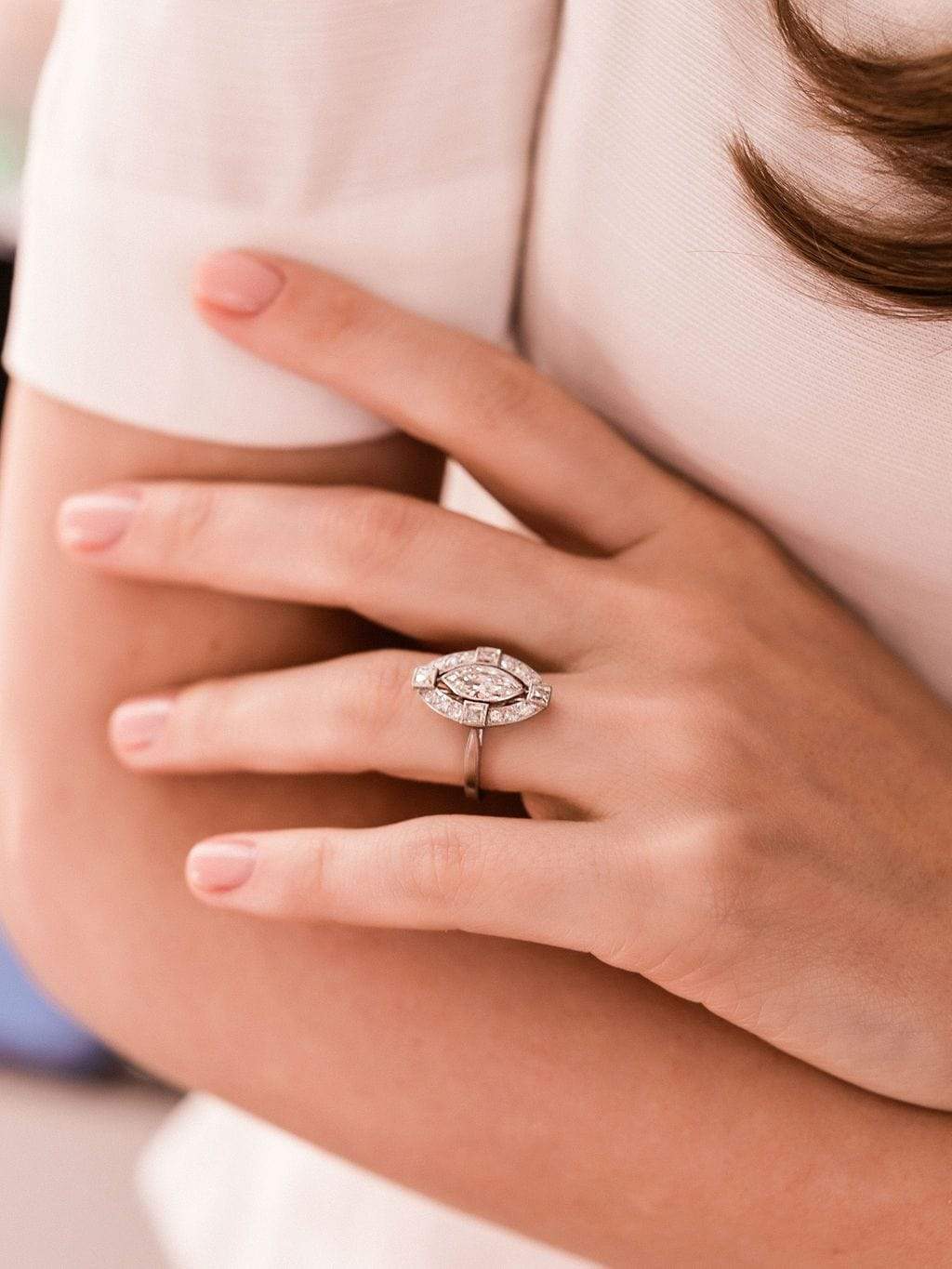 Stackable Marquise Halo Engagement Ring
