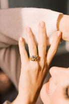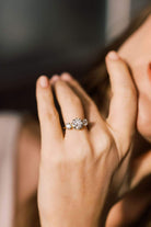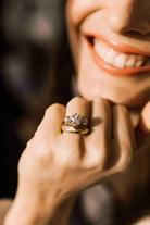 Our ever favorite style made with stunning old European cuts! The diamonds are bright and lively with great specs. This ring is a beautiful, finger-spreading piece that stacks well with almost any band.