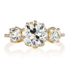 Marielle 2.02 is a VB original design that we made here in NYC using authentically antique diamonds. The ring centers a GIA Certified 2.02 carat old European cut diamond of J color, VS2 clarity. The diamond is set in a 10-prong 18kt yellow gold ring with an old European cut diamond to each side, both combining for 0.71 carats. The ring is size 6.25 and can be resized!