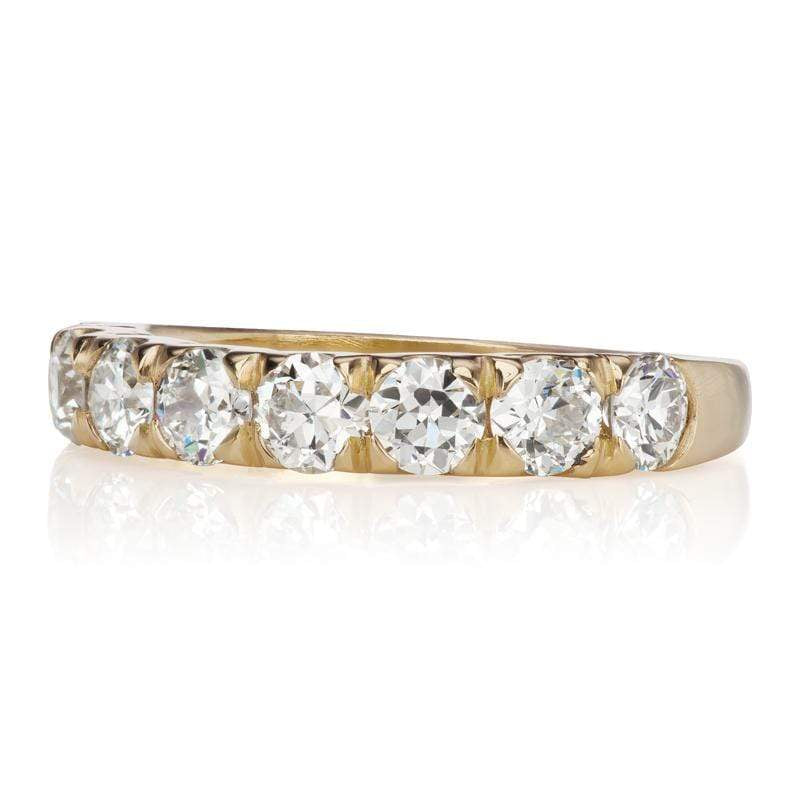 The Devon 1.15 ring is a vintage-inspired VB-made diamond wedding band. The ring has 8 old European cut diamonds of approximately H-I color, VS clarity. The diamonds combine for a total of 1.15 carats. The stones are set in an 18-karat yellow gold setting. The ring is currently size 5.5 and can be resized!