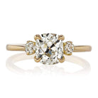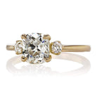 The Daffodil 1.51 ring is a vintage-inspired VB-made diamond engagement ring featuring authentic antique diamonds. The ring centers a GIA certified 1.51-carat old mine cut diamond of J color, VS2 clarity. The stone is set in an 18 karat yellow gold setting. The ring is currently size 5.75 and can be resized!