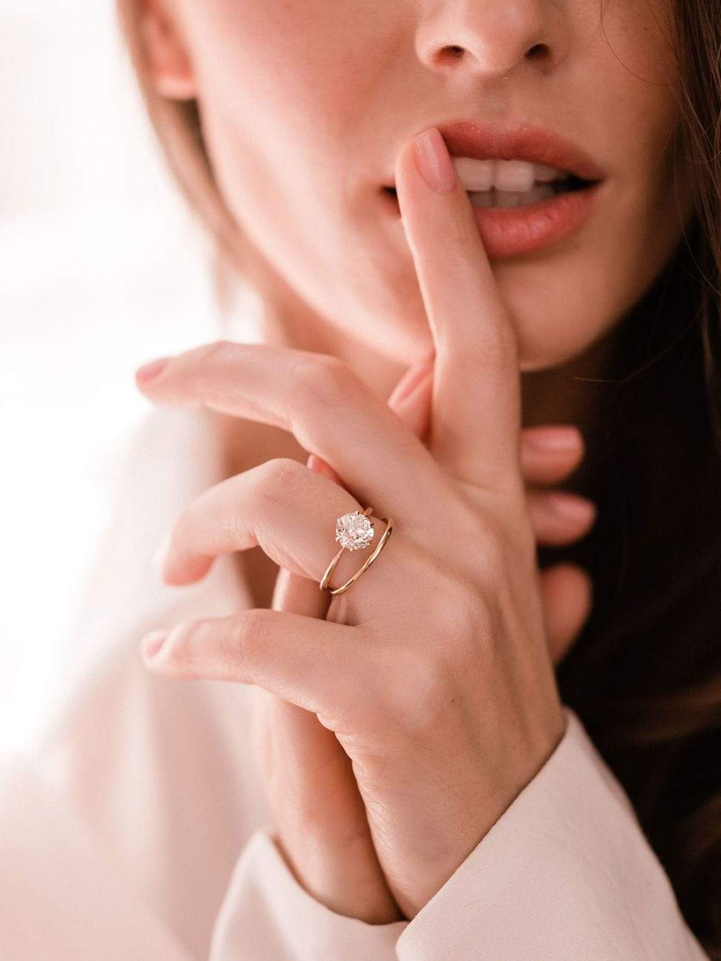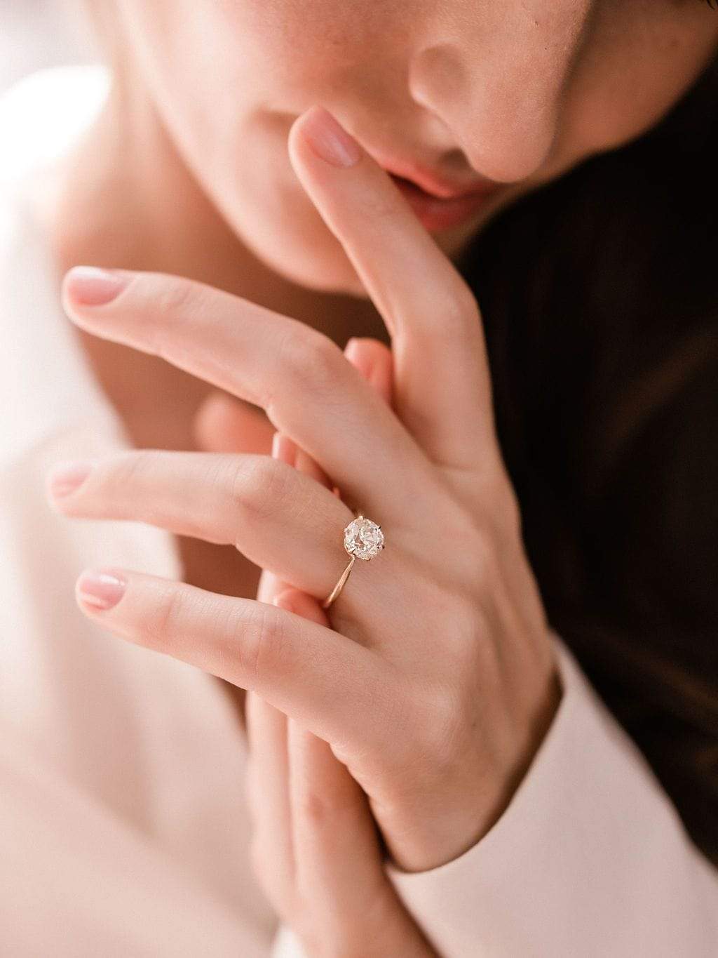 We created this ring to be ultra simple and classic with the emphasis on a really gorgeous antique diamond. The slight taper creates an elegant focus on the center stone.