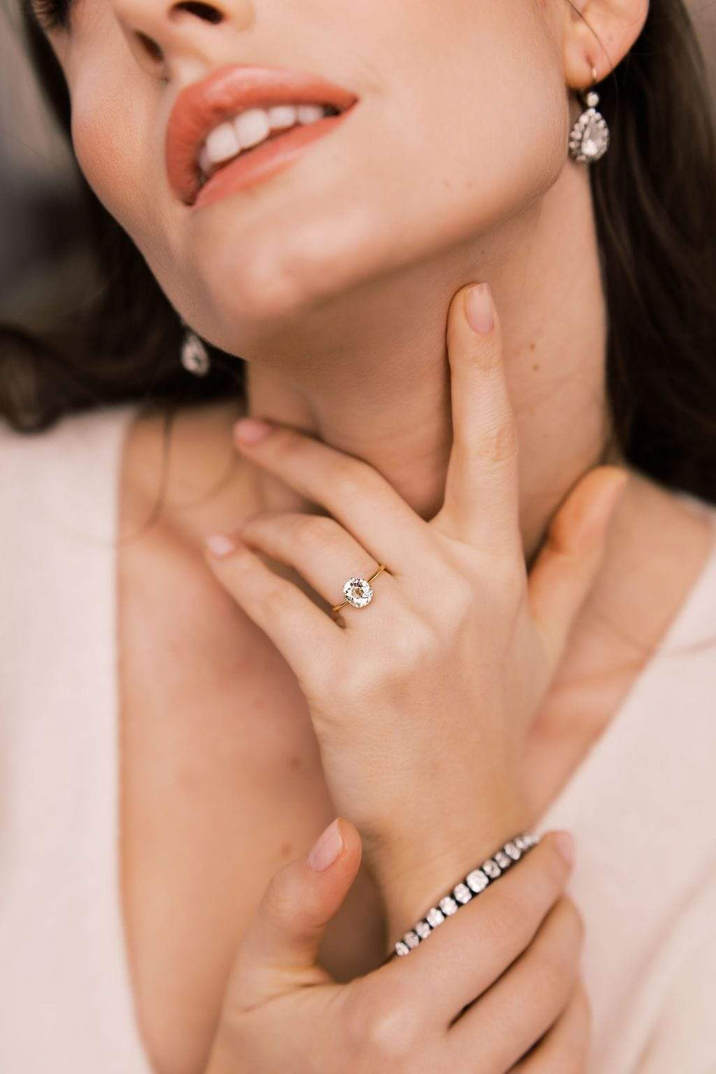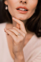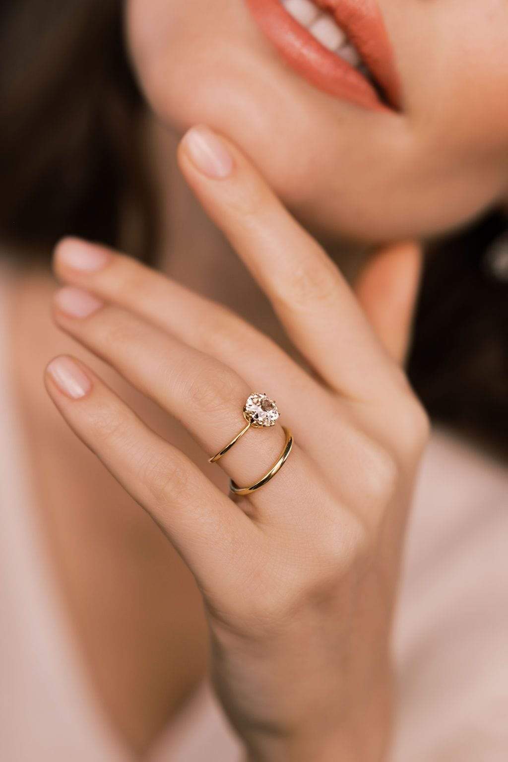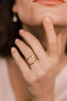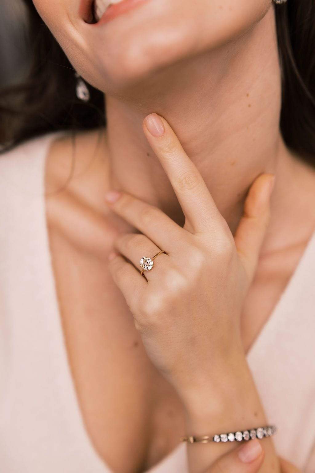 We love this style for simply and beautifully displaying the gorgeous antique diamond at the center. Incredibly delicate and easy to wear.