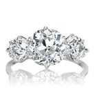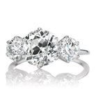 Three Carat Three-Stone Old Mine Cut Diamond Engagement Ring in Platinum Setting