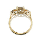 The Xaden ring is an AB original design made right here in NYC. The ring centers a GIA-certified 1.48-carat Asscher Cut diamond of J color, VS1 clarity. The stone is set in a four prong 18kt yellow gold setting. An Asscher Cut diamond is set to either side of the center stone with the points of the stones in a North-South orientation for a unique twist! The side stones are approximately I-J color, VS clarity, combining for roughly 0.50-carats. The ring is currently size 6 and can be resized!