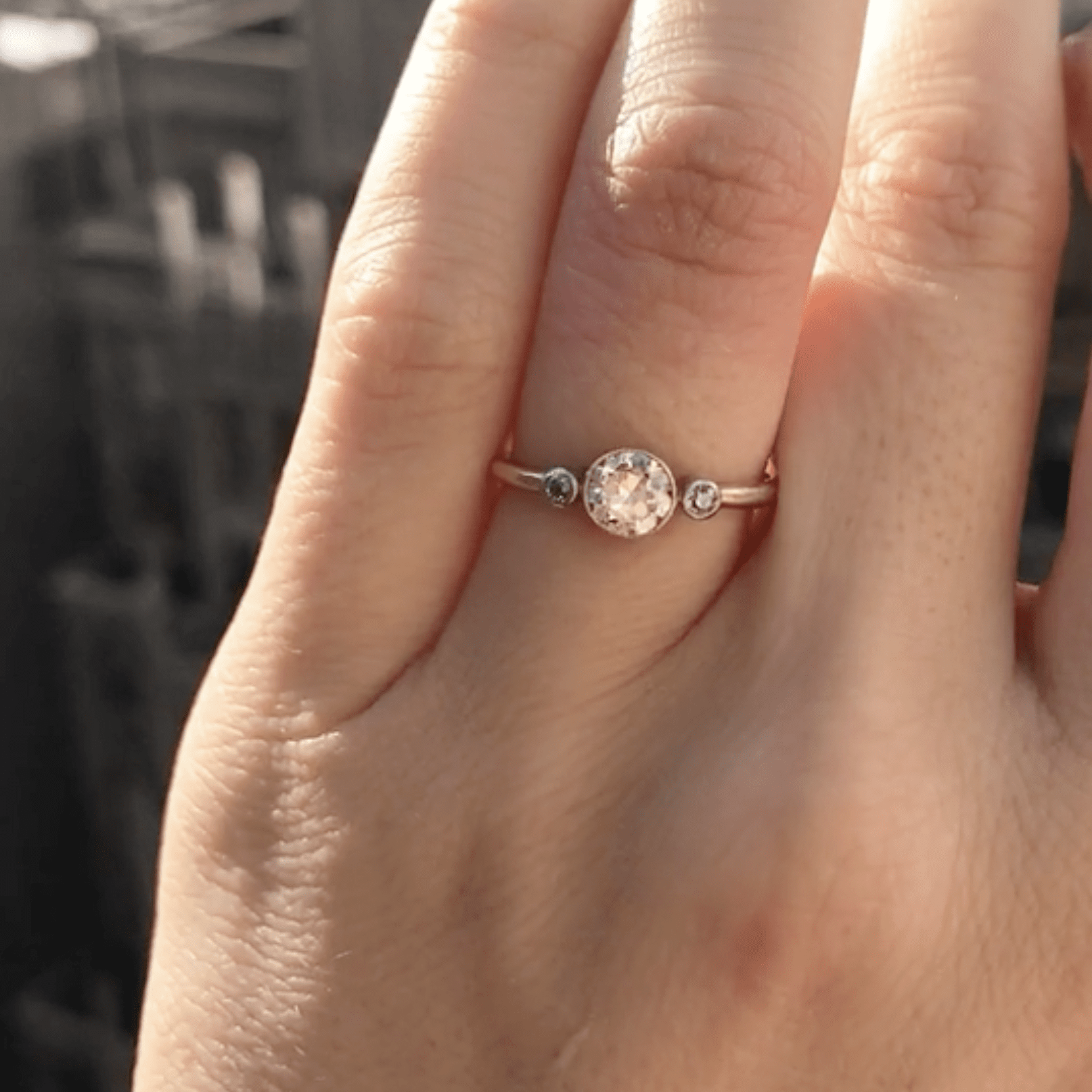 Three Stone Bezel Set Engagement Ring