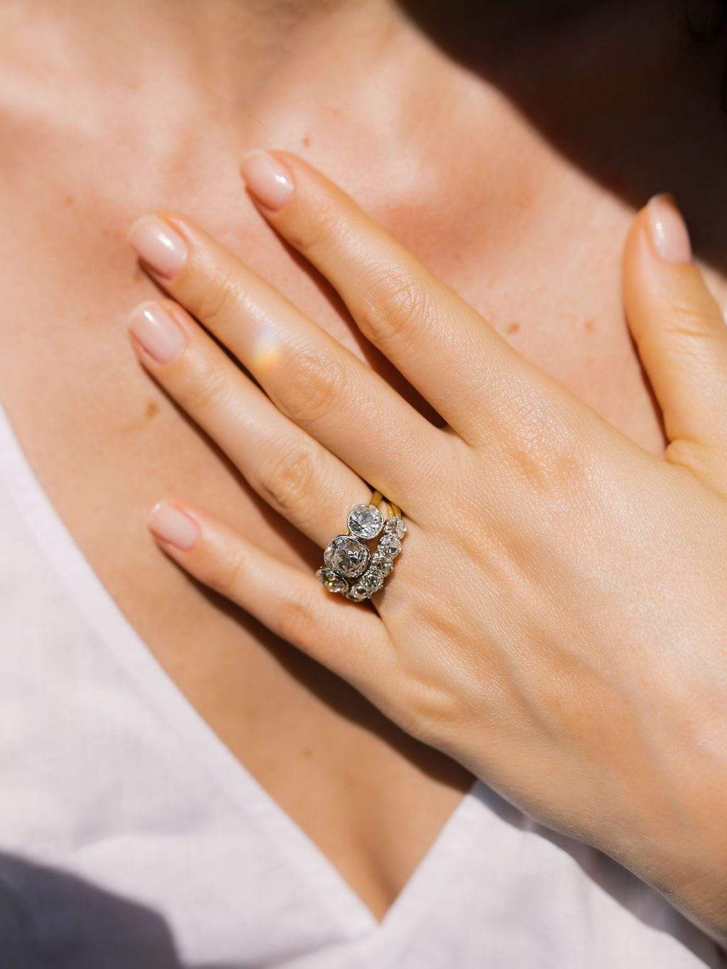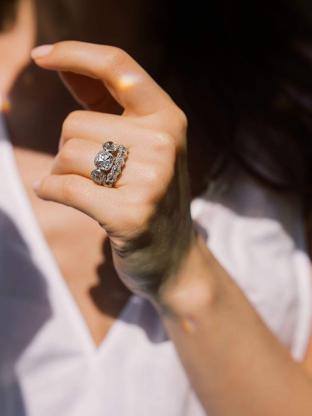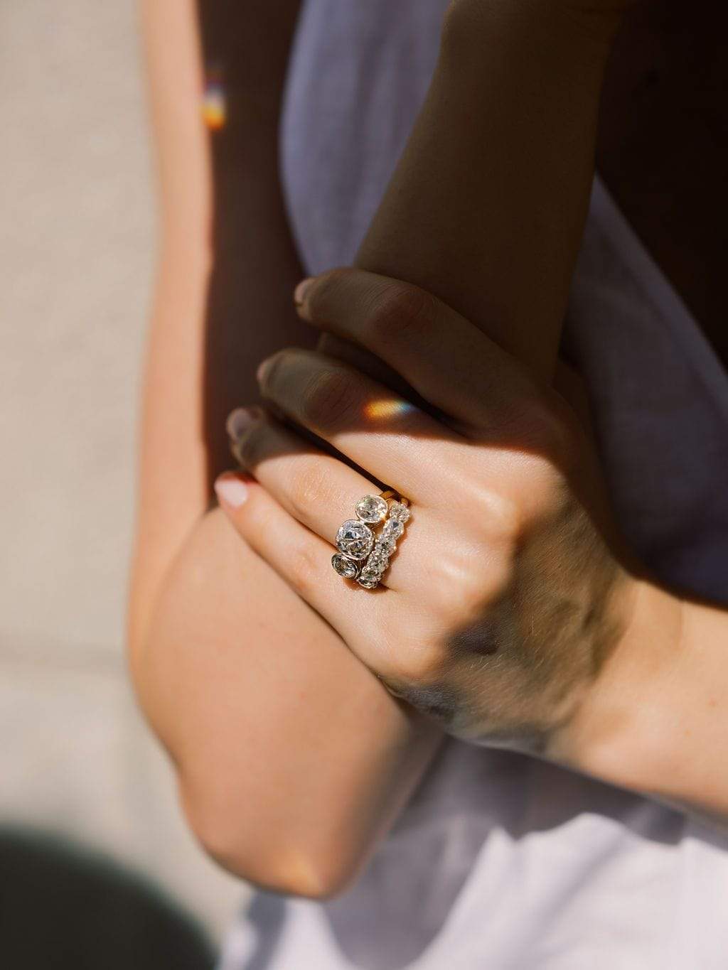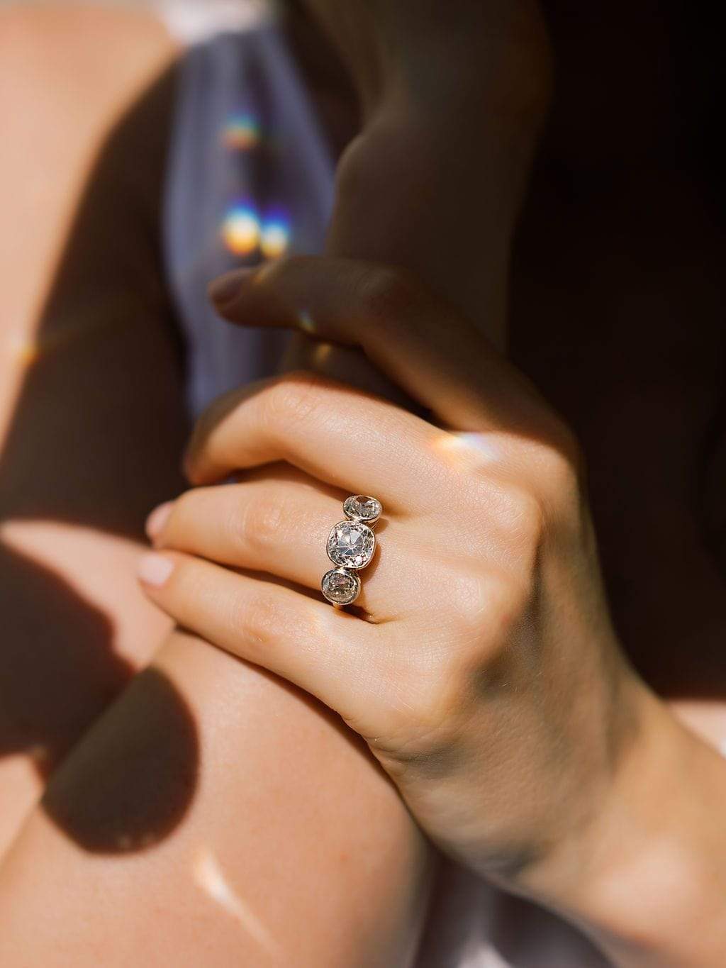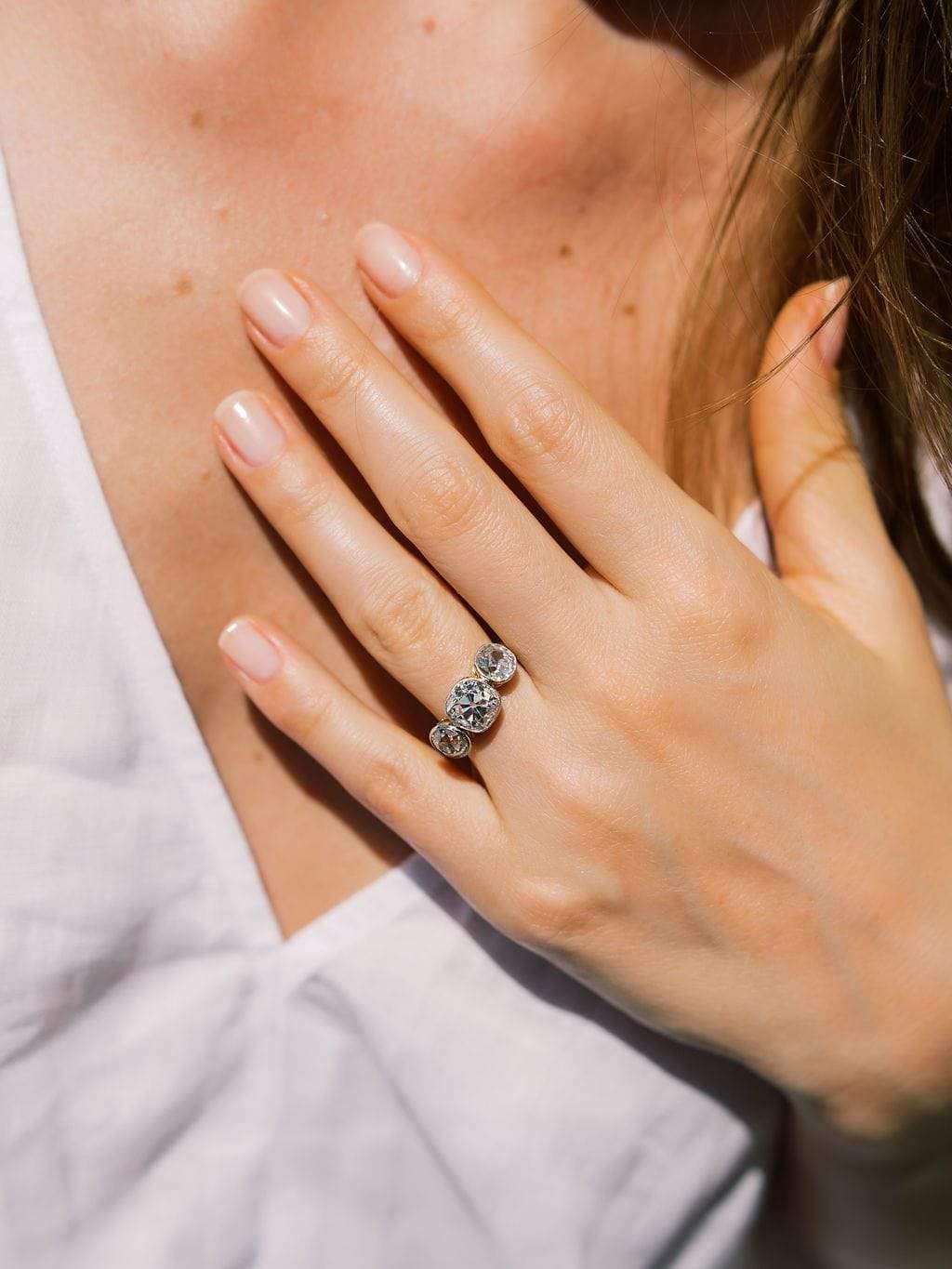 The Megan ring is incredible! All three diamonds are magnificent and high quality with that gorgeous old-cut faceting that is so adored! The lines of the ring are clean and simple and really allow the diamonds to shine!