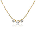 The Debbie Necklace 1.89 is an AB original design made here in NYC. The necklace features three Old European Cut diamonds of I-J color, VS-SI clarity. The 3 stones combine for a total of 1.89 carats. The diamonds are prong-set side by side on an 18kt yellow gold chain.