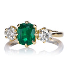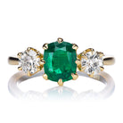 Three Stone Yellow Gold Emerald and Diamond Engagement Ring