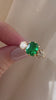 This ring features a dreamy deep green Emerald with shimmering old cut diamonds accenting the sides. A beautifully balanced piece at a great price point.