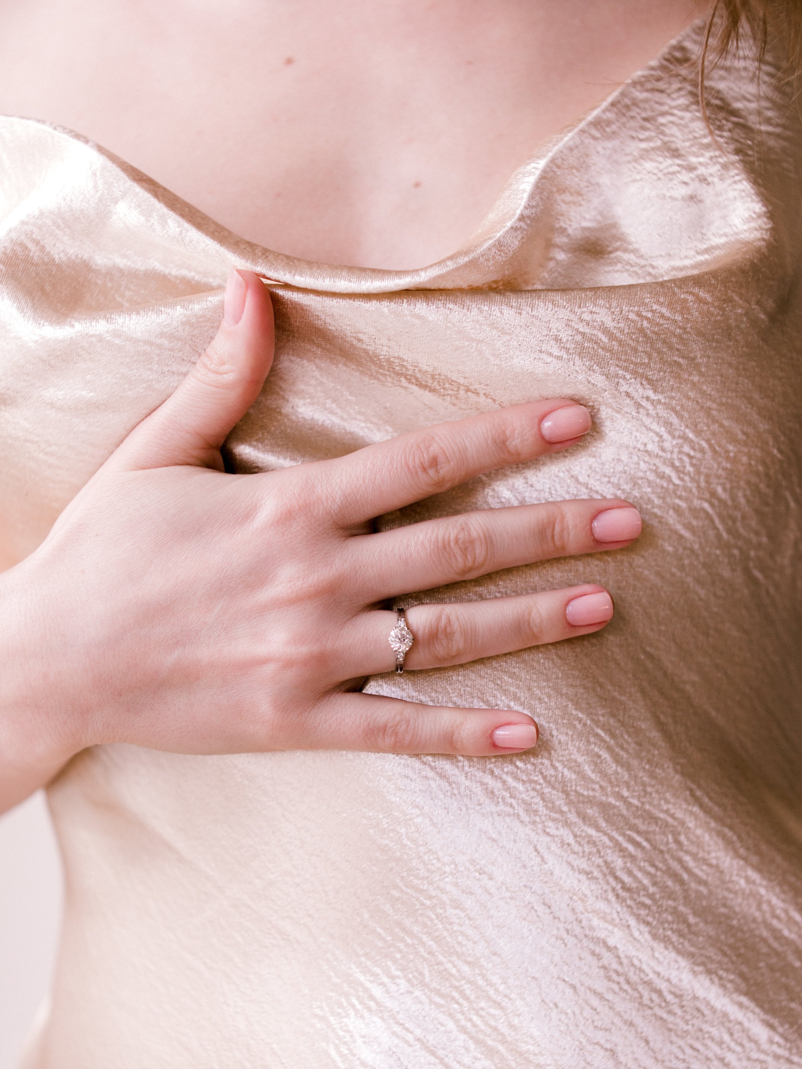 A beautiful Tiffany's piece with simple elements that are always spot on! The diamond is set low with sleek prongs and the side diamonds that add just enough extra sparkle!
