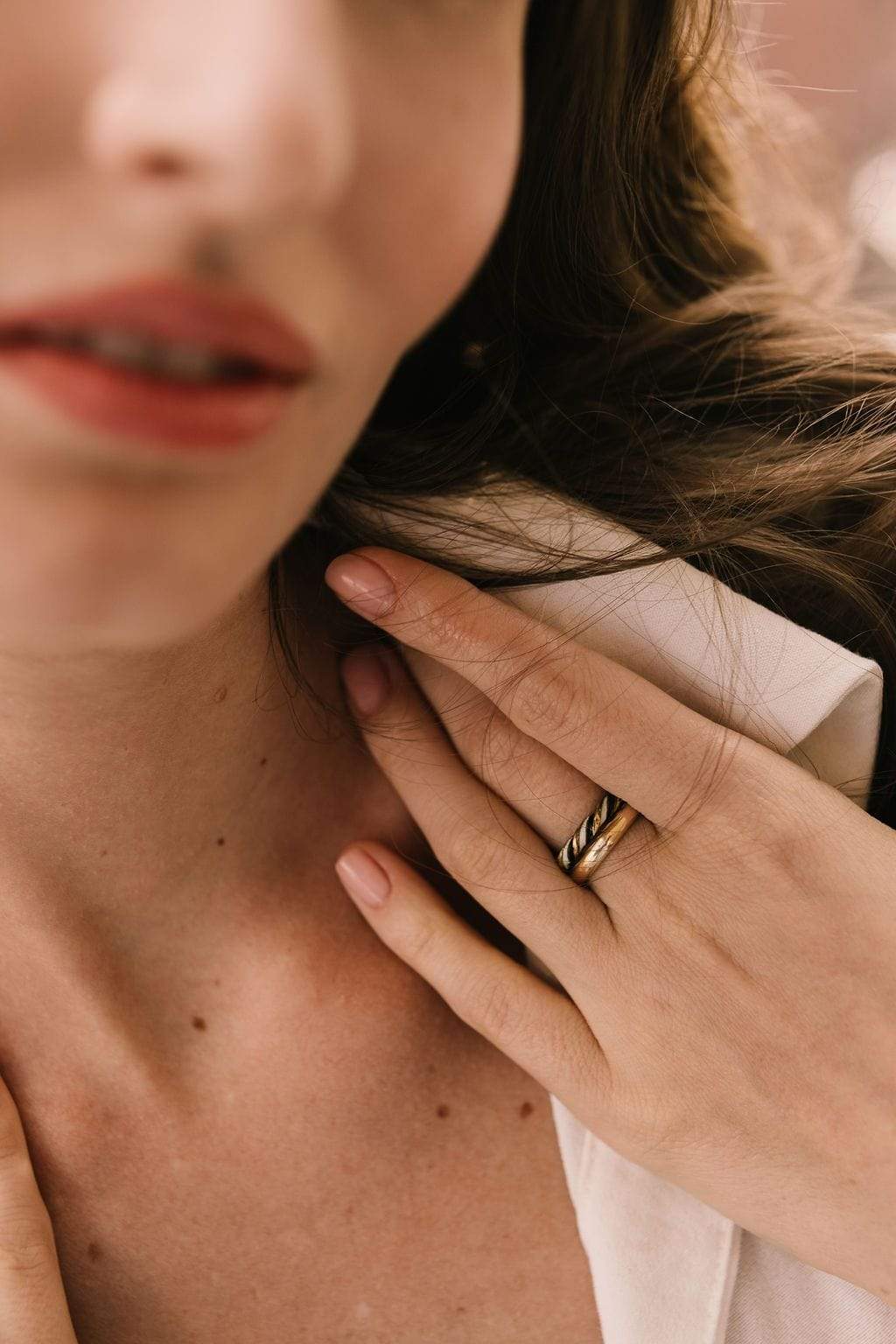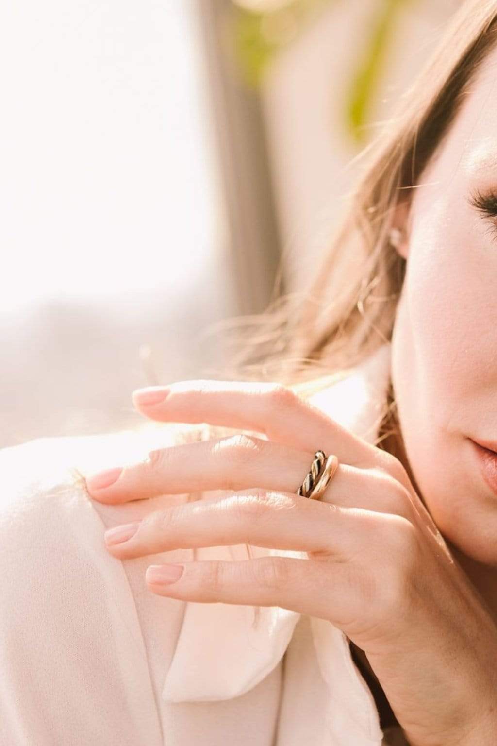 The Zola band is a vintage Tiffany & Co. wedding band. This Tiffany Twisted 18Kt Yellow Gold & Black Enamel Wedding Band features a very cool twisted appearance with white and black enamel on 18kt yellow gold. The ring is 3.4mm tall and 2.4m wide. The ring is size 5.75 and cannot be resized!