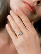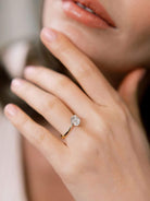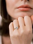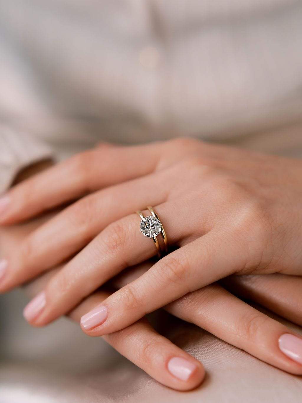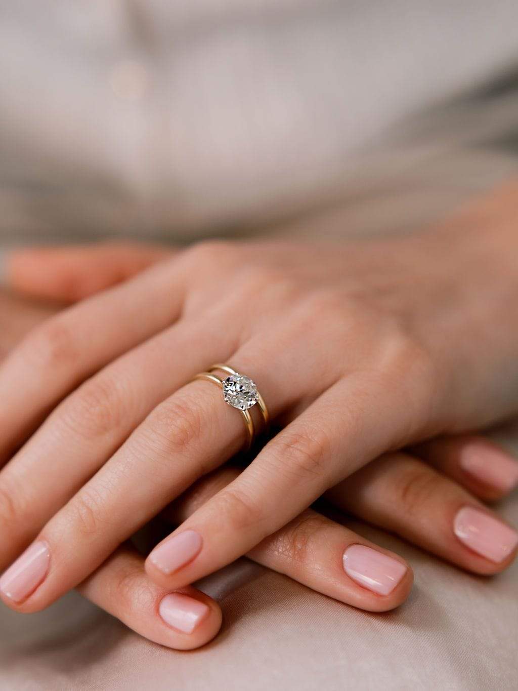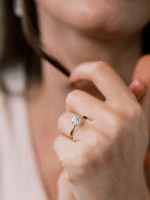 This diamond is incredibly bright and beautiful and deserves to be the main attraction so we set it super simply in a delicate and lowwww setting that stacks nicely with bands!