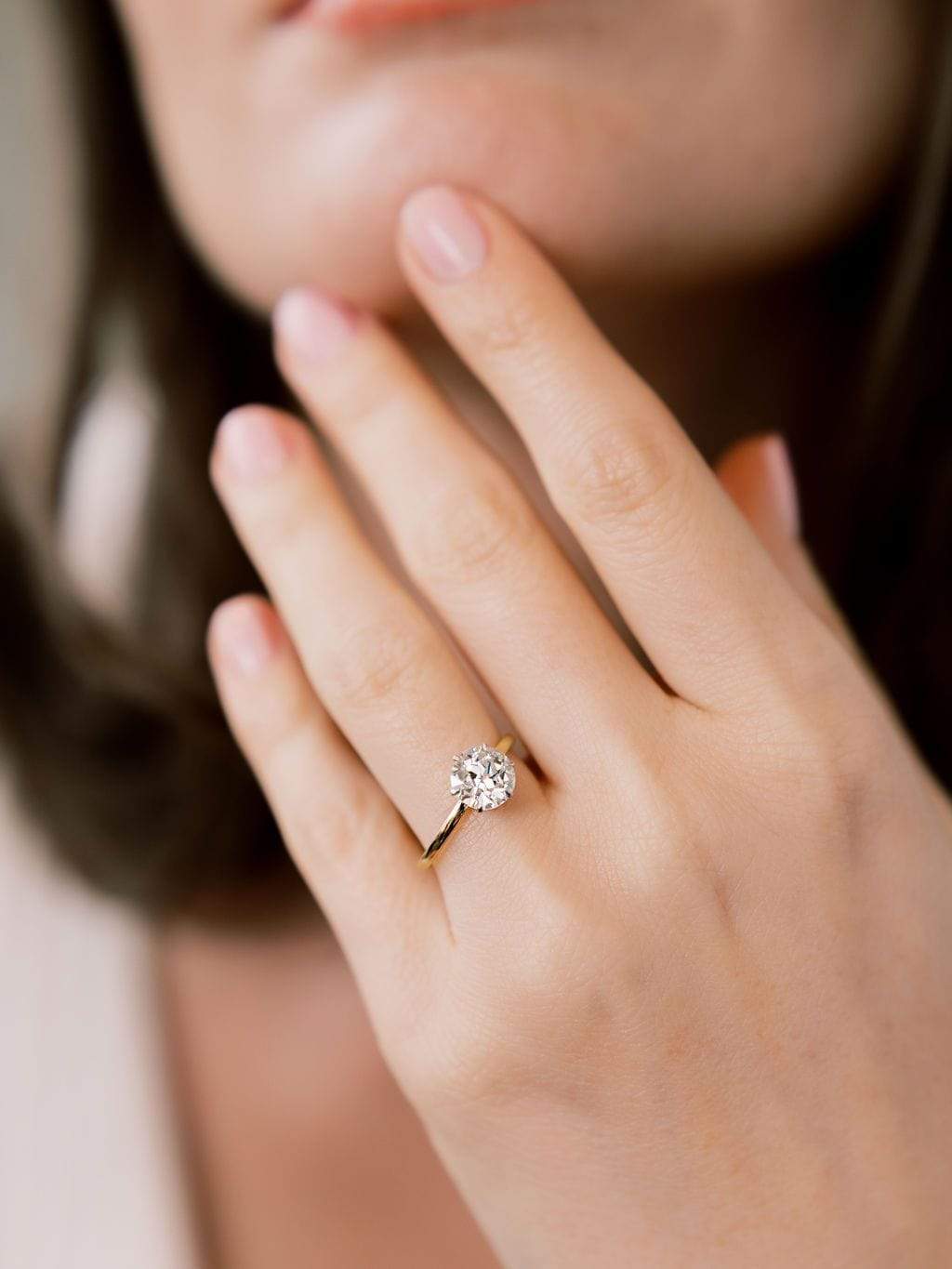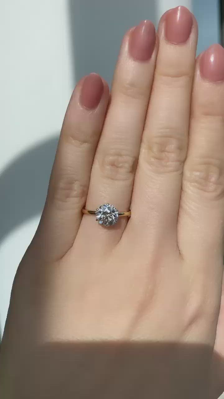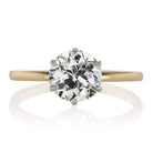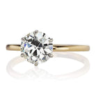 The Emmy 1.62 is an original VB design made right here in NYC using an authentically antique diamond. The ring centers a GIA Certified 1.62 carat transitional cut diamond of I color, SI1 clarity. The diamond is set in a 6 prong platinum basket with an 18kt yellow gold band. The ring is size 7 and can be resized!