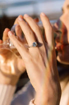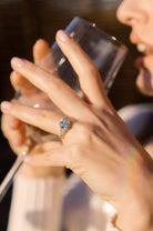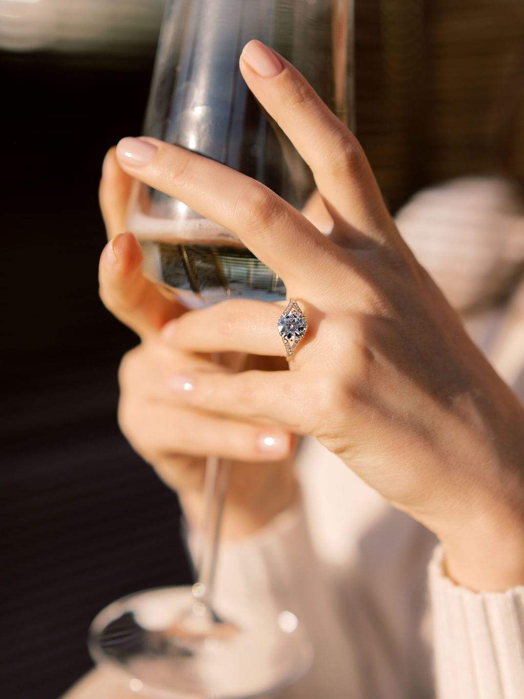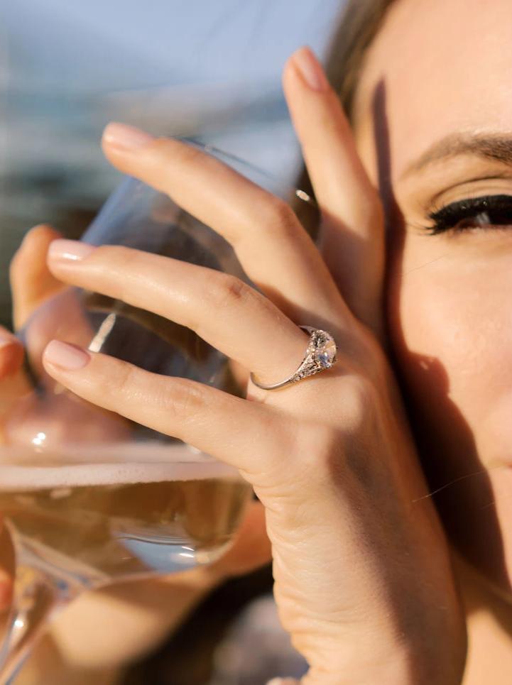 The center stone on this ring is divine with a great spread and a gorgeous play of light. The setting is classic with vintage details we love to see in these rings that are definitely vintage but feel very on-trend for today's styles!