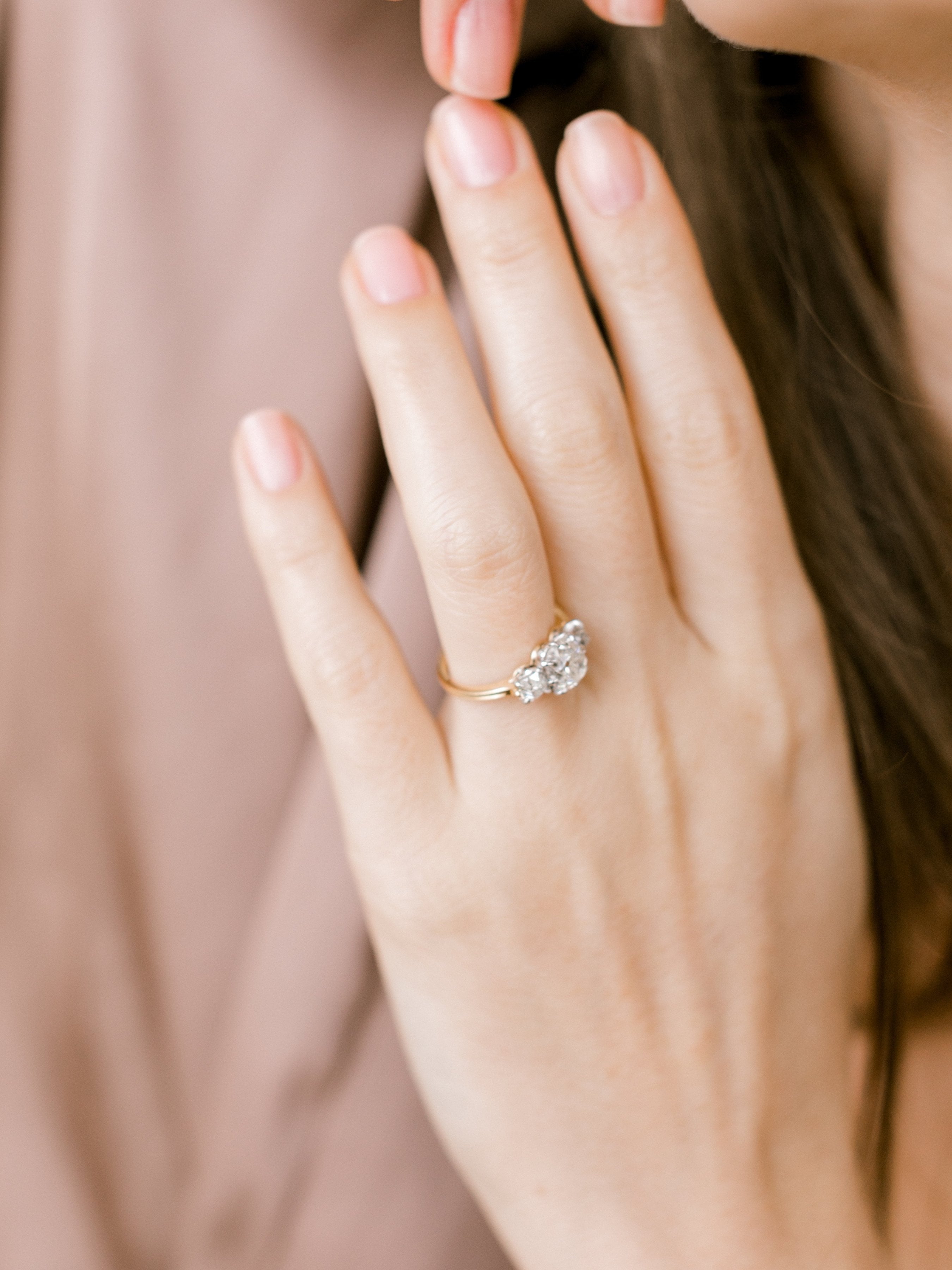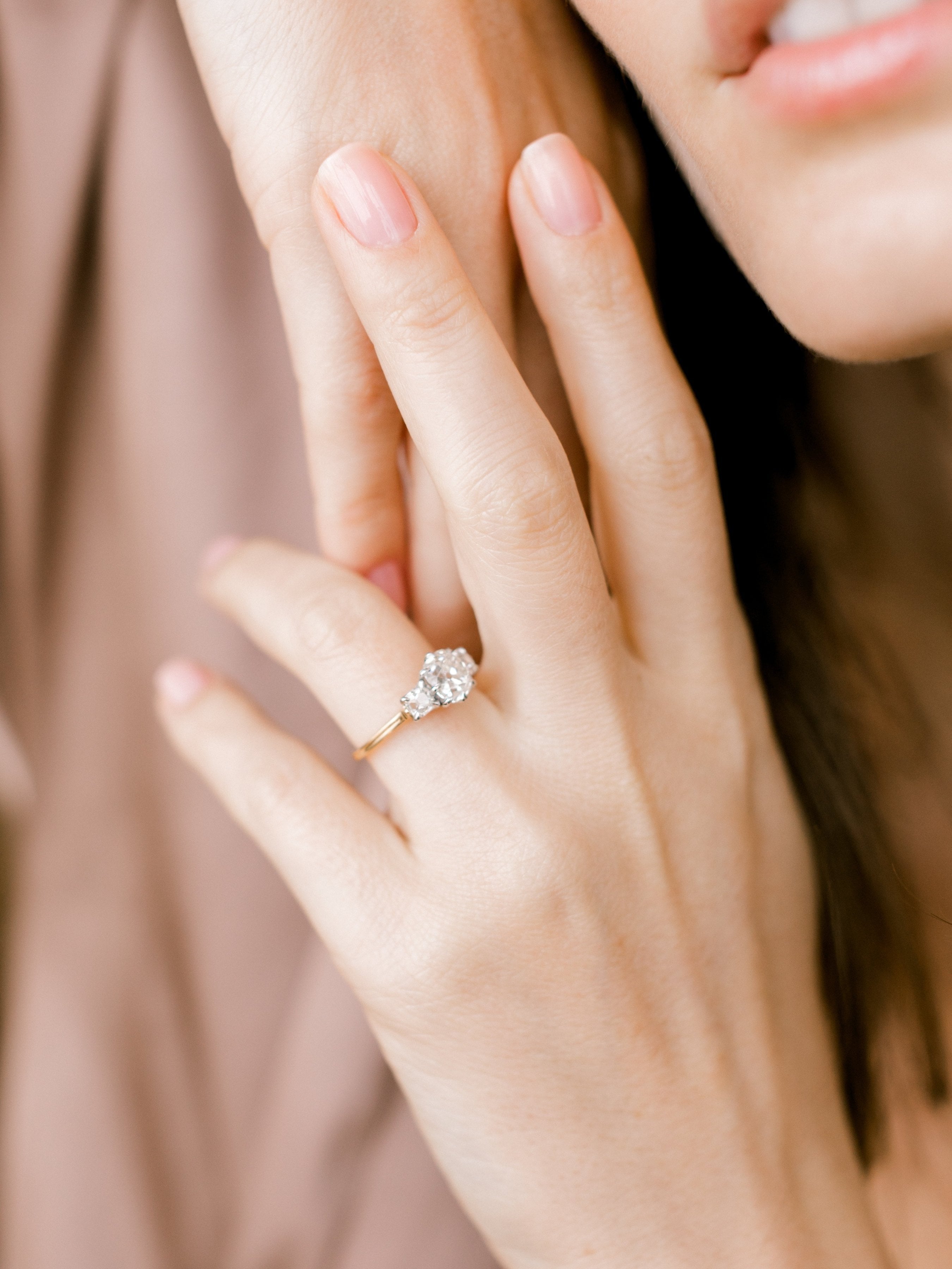 Loving the proportions on this ring of the diamonds to each other and the delicate setting! The diamonds are beautiful old cuts with lovely faceting that really draws your eye into the stones!