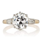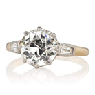 The Kristine 2.18 ring is a VB original design made right here in NYC centering an authentically antique diamond. The ring centers a GIA certified 2.18-carat old European cut diamond of J color, VS2 clarity. The stone is set in a platinum basket on an 18 karat yellow gold setting. The ring is currently size 6 and can be resized!