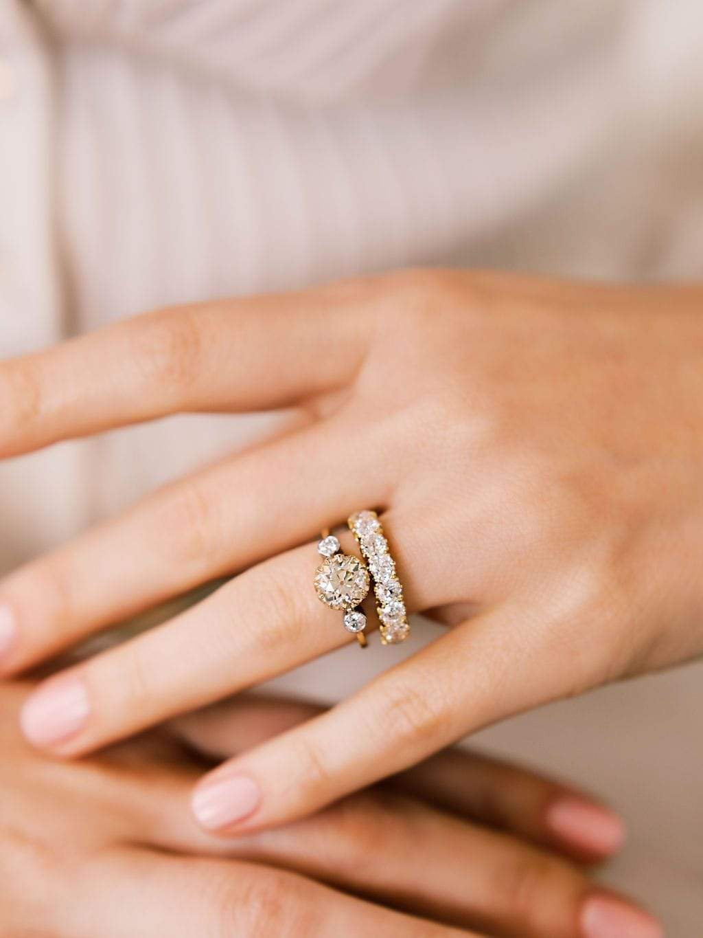 Two Tone Engagement Ring with Bezel Set Side Stones